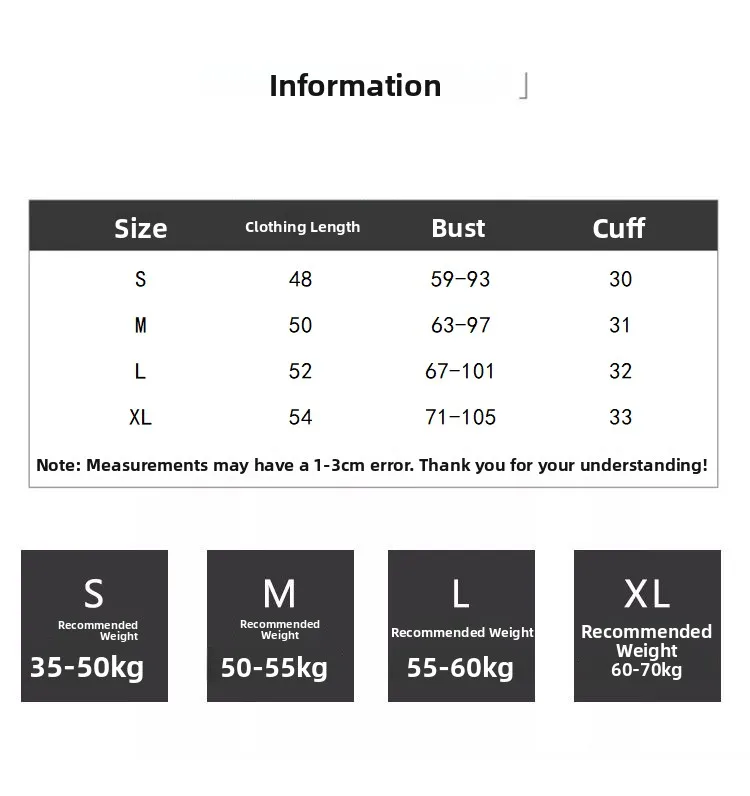 L code [recommended 55-60kg ]M code [recommended 50-55kg ]S code [recommended 35-50kg ]Xl code [recommended 60-70kg ]