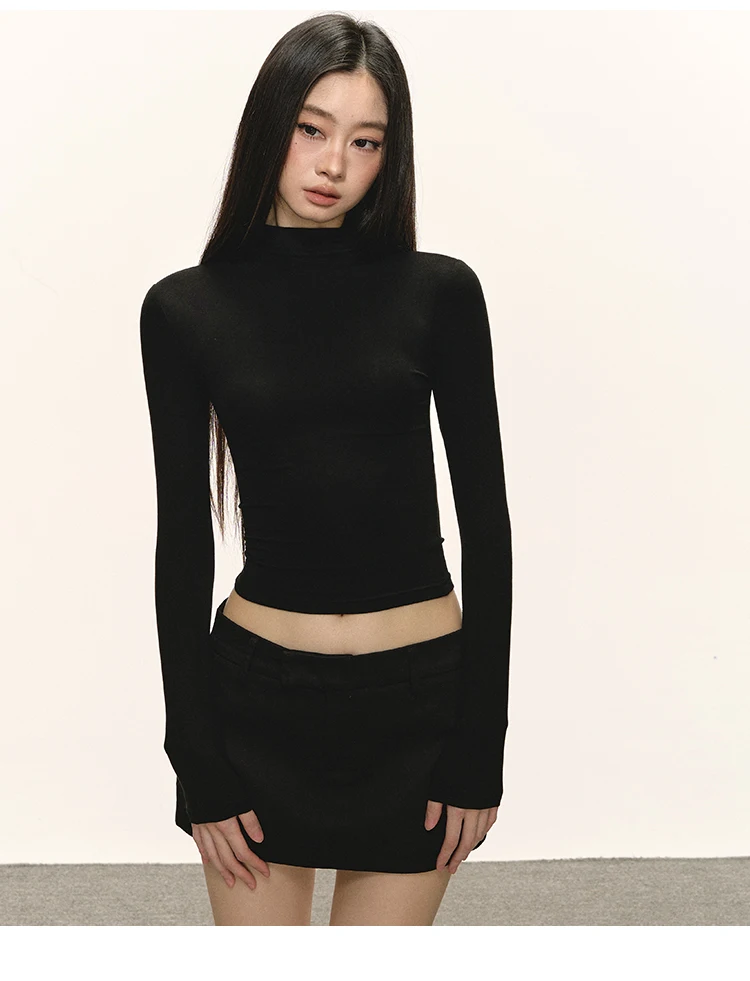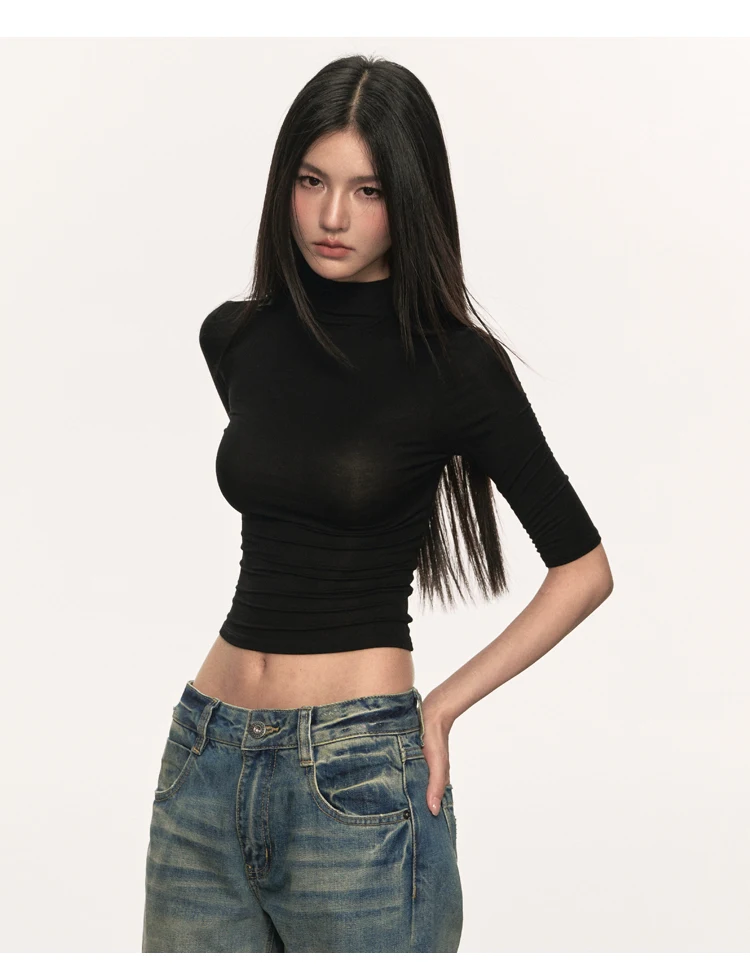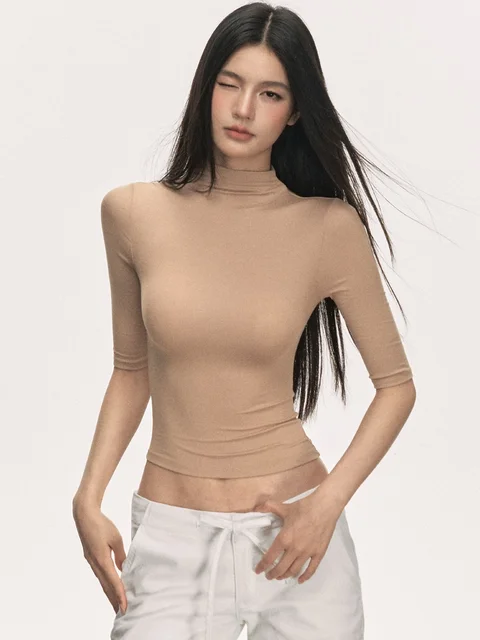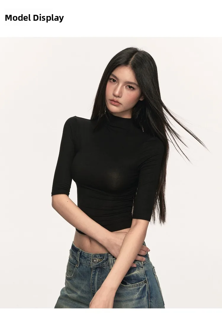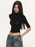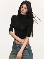 Sexy Bla ort Sve T-irt Women Early Autumn Pure Desire Slim Fit ort Sle oulder Top Casual Sle Universal pe