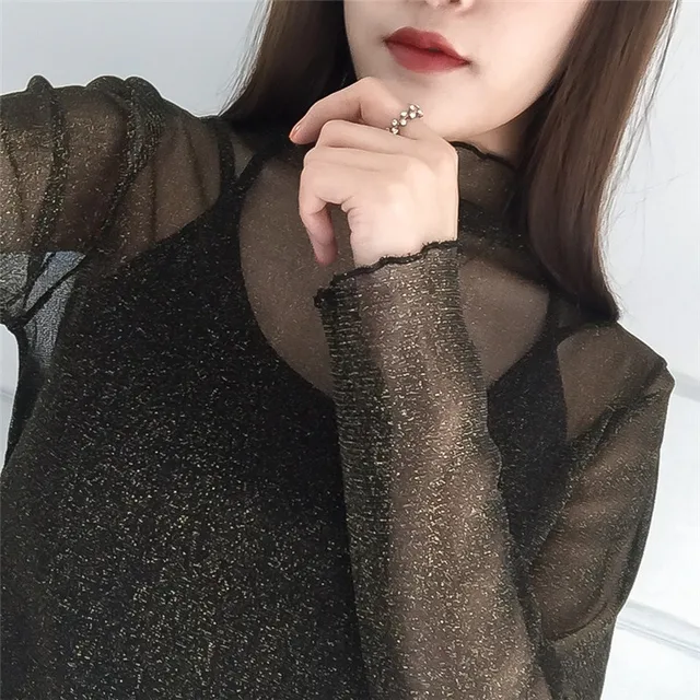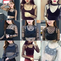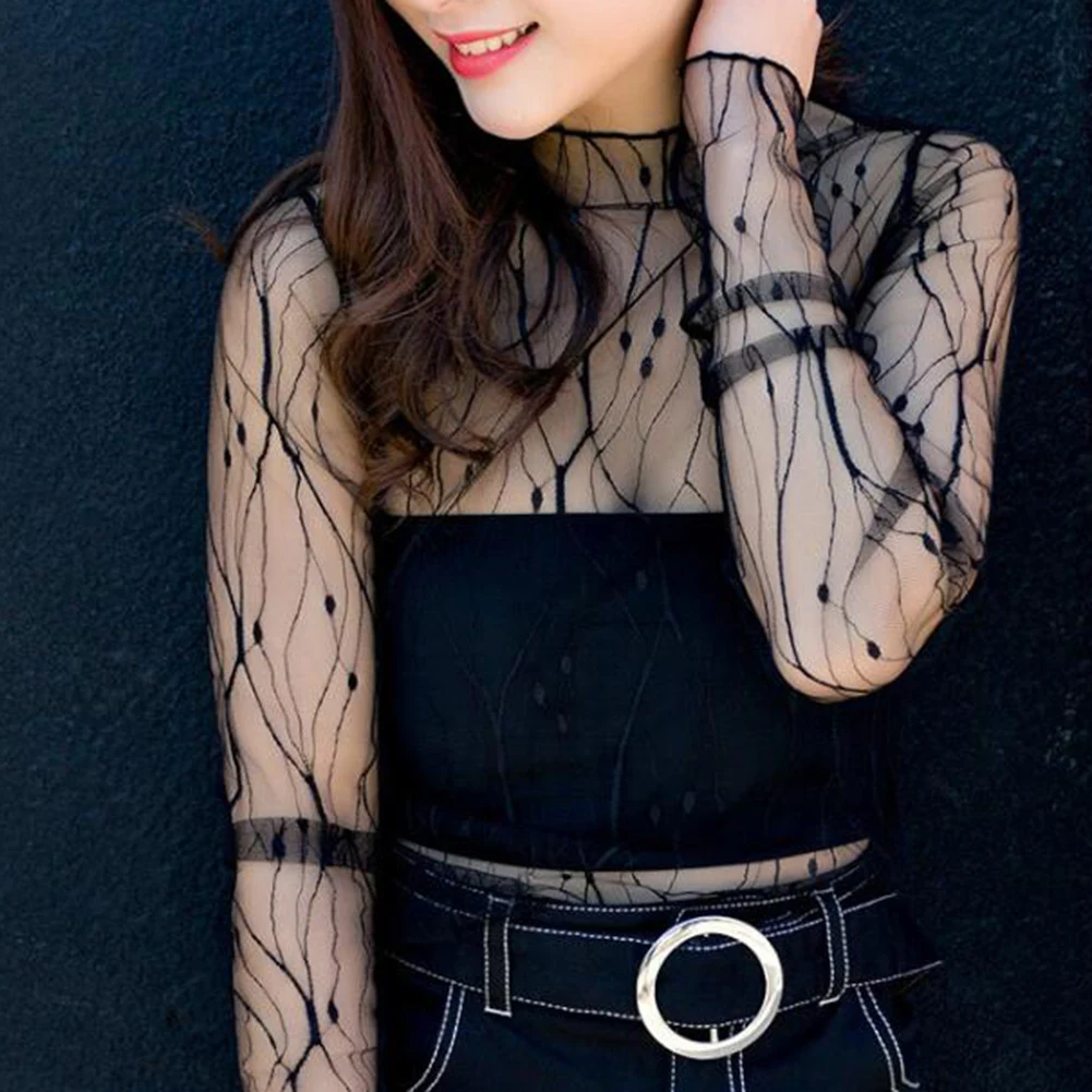 Women Fashion T-Shirts Mesh Sheer Party Long Sleeve Blouses T-Shirt Ladies Tops
