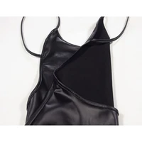 Sexy Faux Leather Dress Backless Club Party Short Dress Solid Black Wet Look Latex Bodycon Push Up Bra Mini Micro Dress