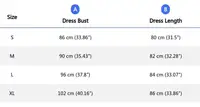 Size XL: Dress Bust 102 cm (40.16”), Dress Length 86 cm (33.86”)