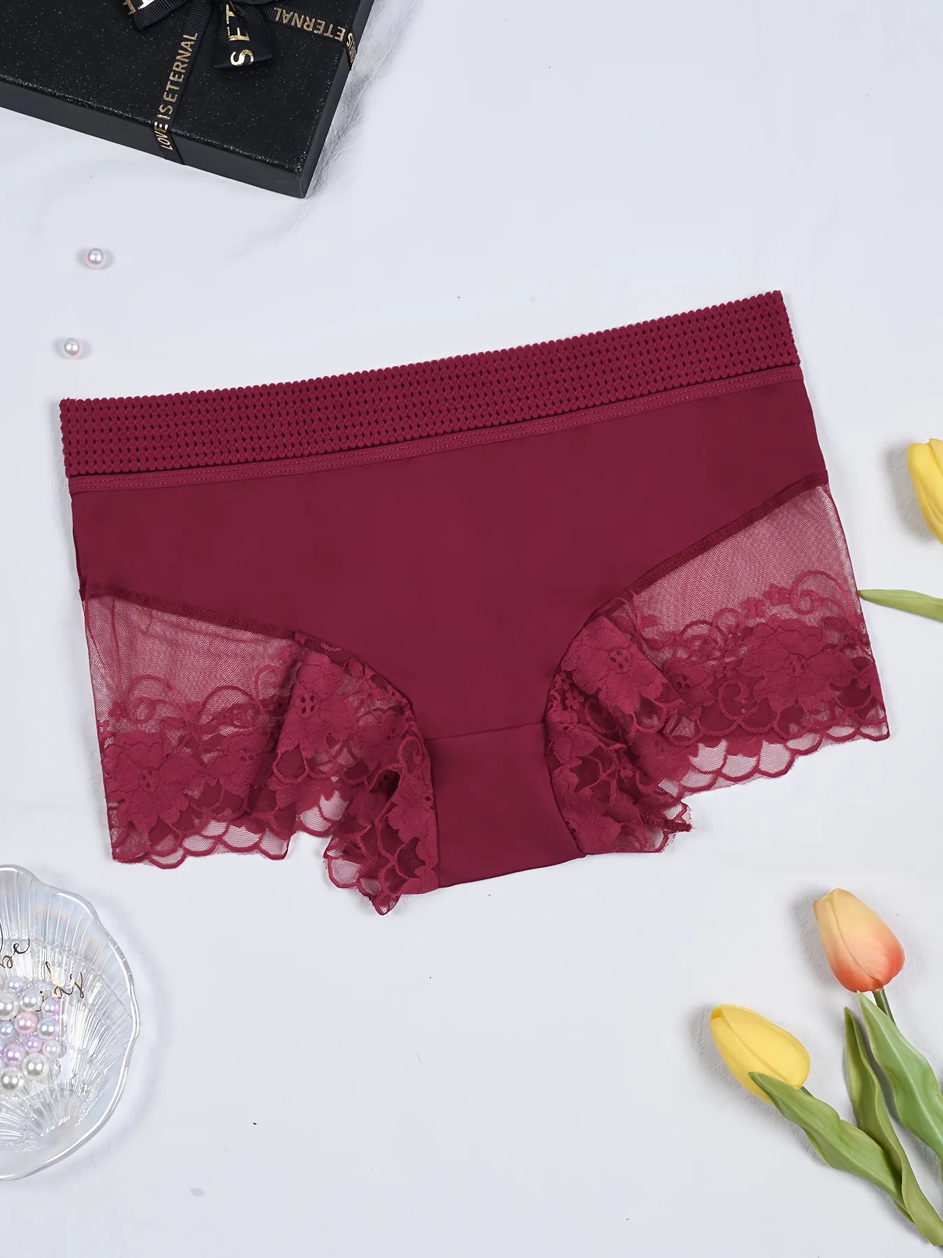 The shorts feature a sexy floral lace design, adding a touch of femininity and elegance to your outfit.
