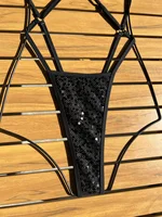 Sexy Glitter Black Sequin Micro Swimsuit One Piece Women’s Bikinis Swimwear Backless Cross Bathing