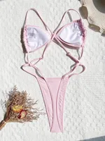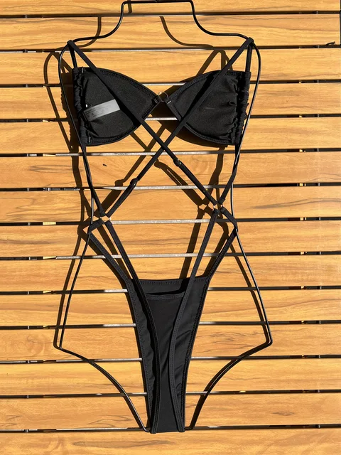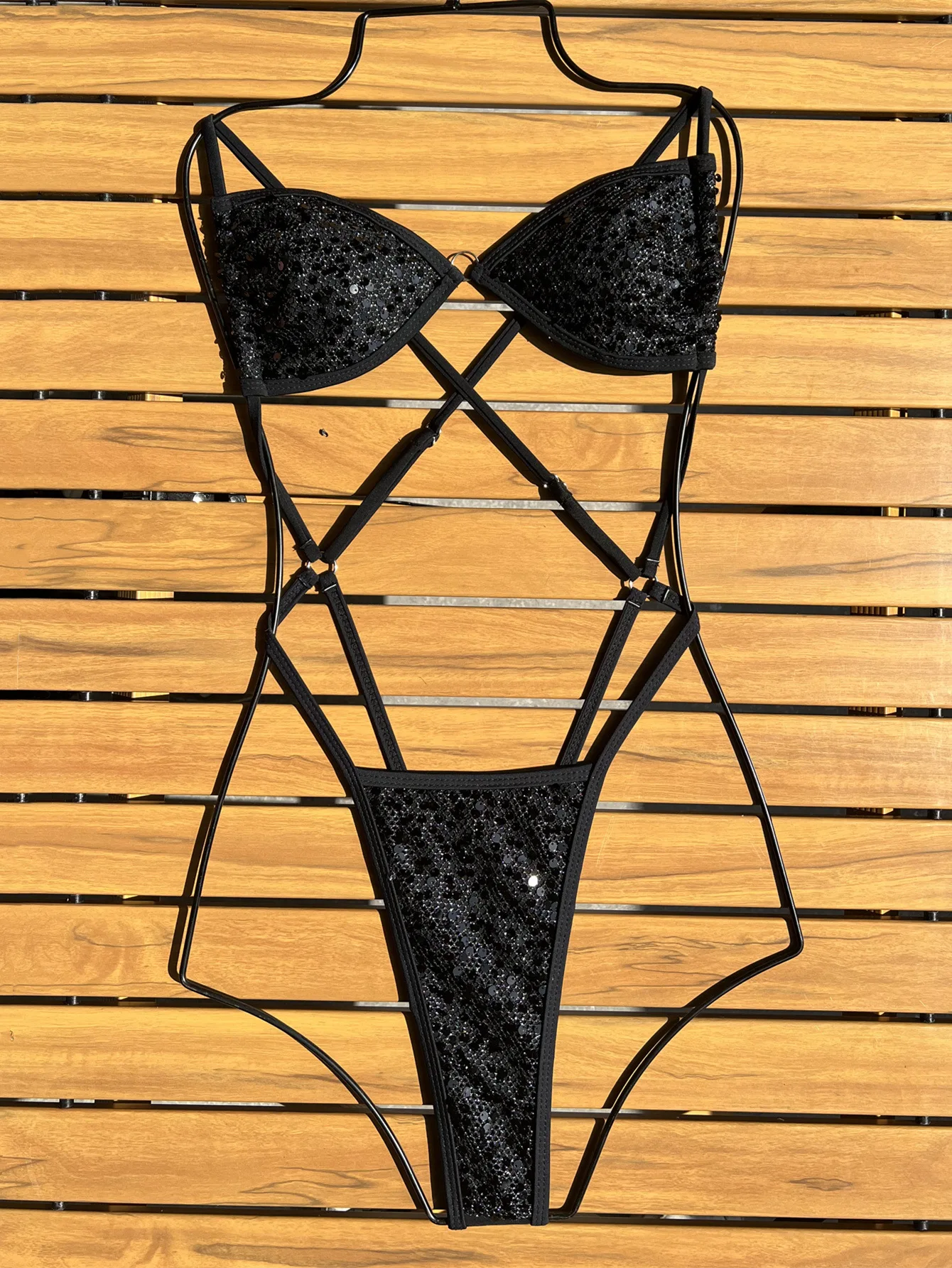 Sexy glitter black sequin micro swimsuit one piece women's bikinis Swimwear backless cross bathing suit beach outfits bodysuits