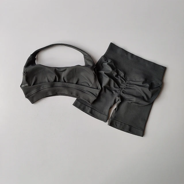 2 Pieces Yoga Suit for Women Seamless Fitness Gym Clothes Halter Sports Bra Matching Impact Shorts Workout Sets Gym Set Outfit