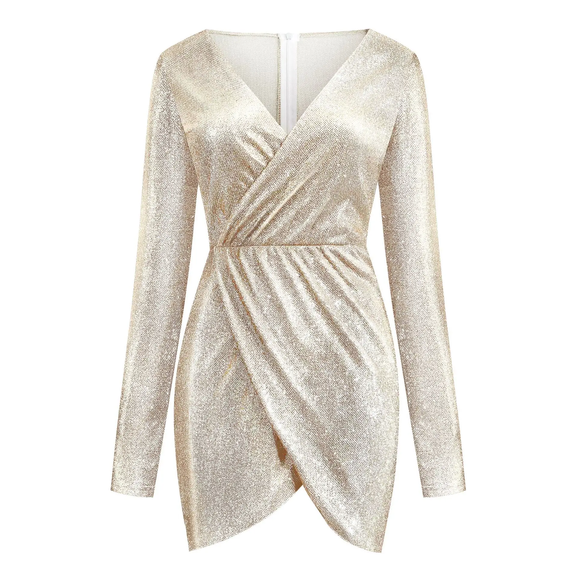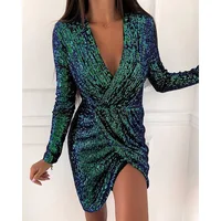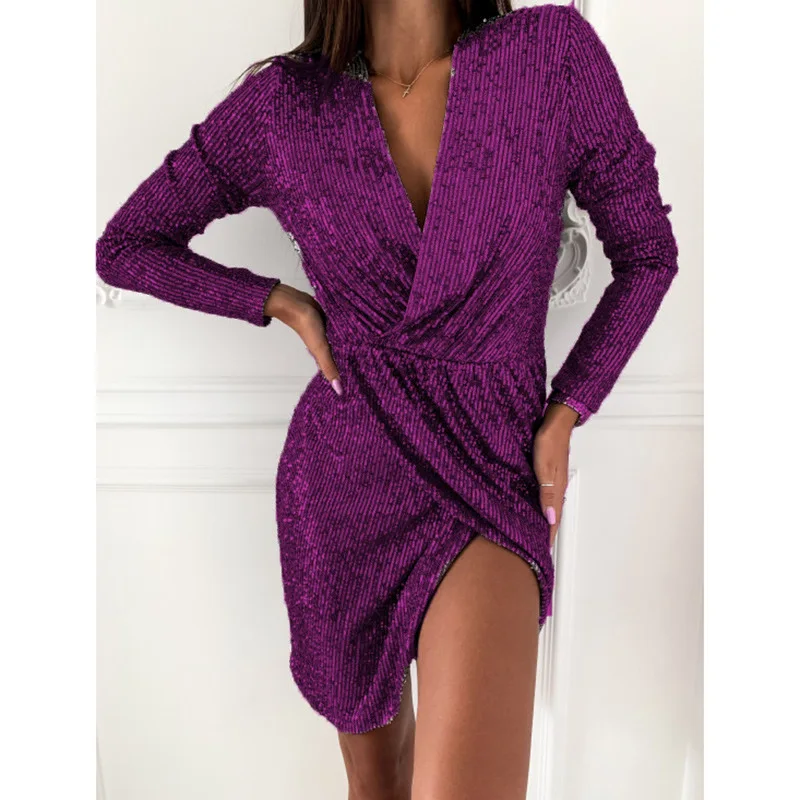 Be the first to review “Sexy hot stamping dress, long sleeved V-neck mini short dress, women’s dress”