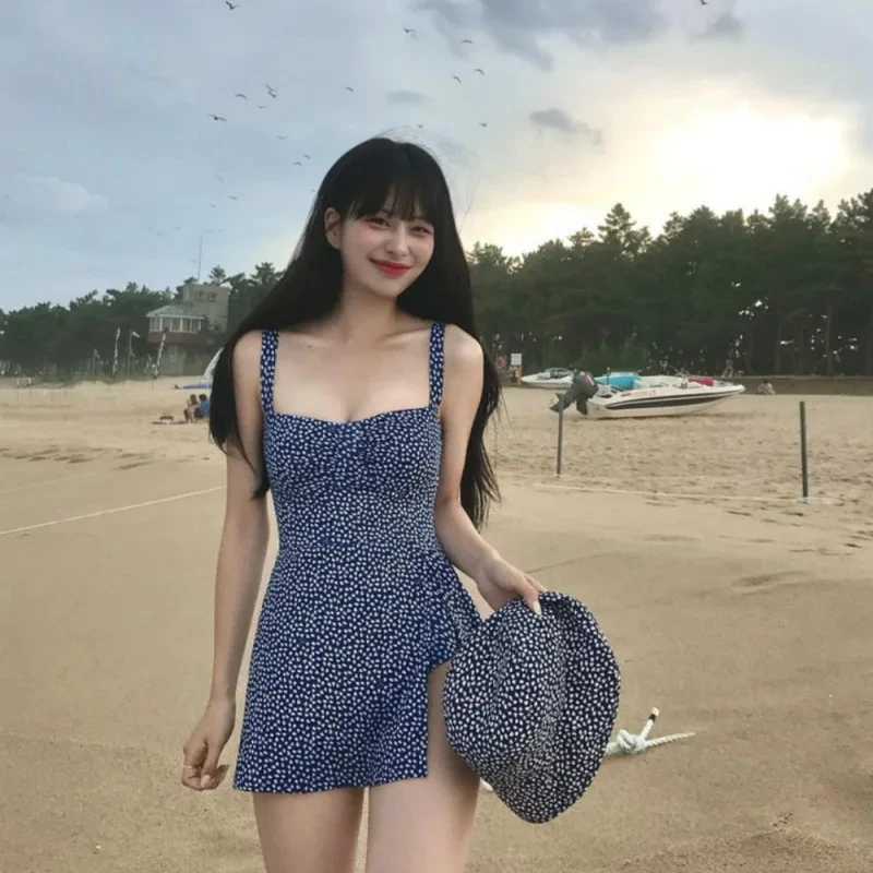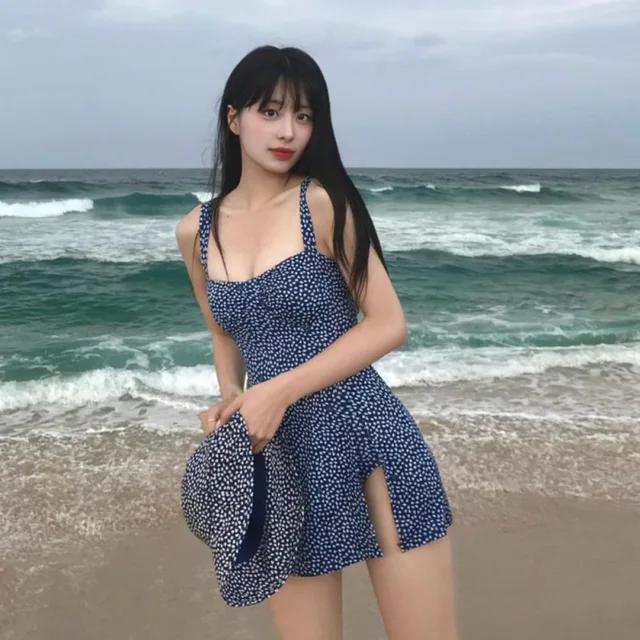 Women Swim Dresses Print Backless Puch Up One Piece Skirt Swimsuit Padded One Piece Swimwear Summer Beach Bathing Suit Women