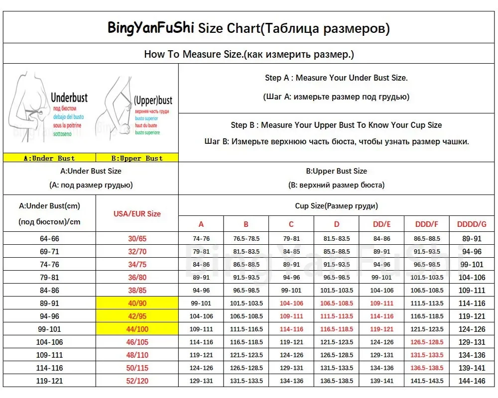 40D=90D, 40DD=90DD, 40E=90E, 40F=90F, 42D=95D, 42DD=95DD, 42E=95E, 42F=95F, 44D=100D, 44DD=100DD, 440=100E, 44F=100F,