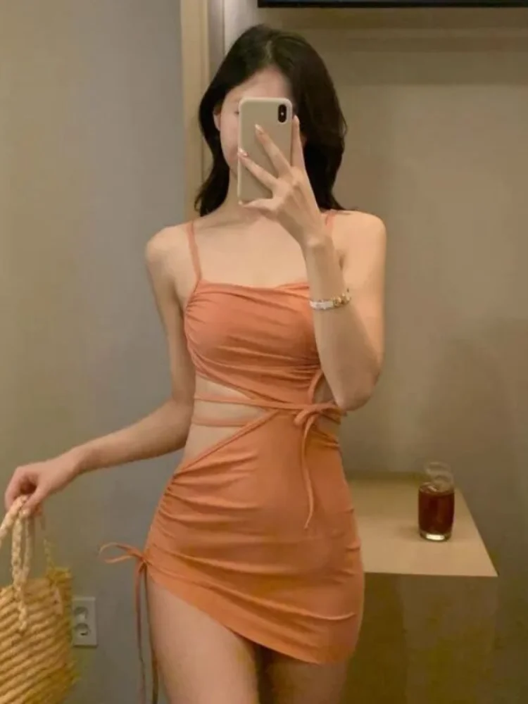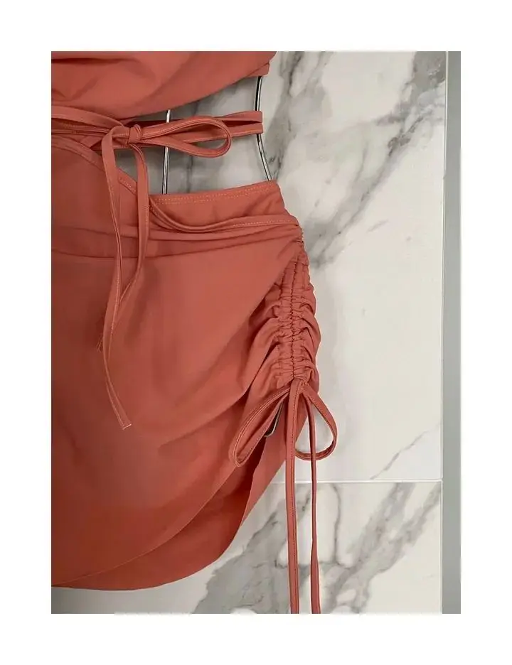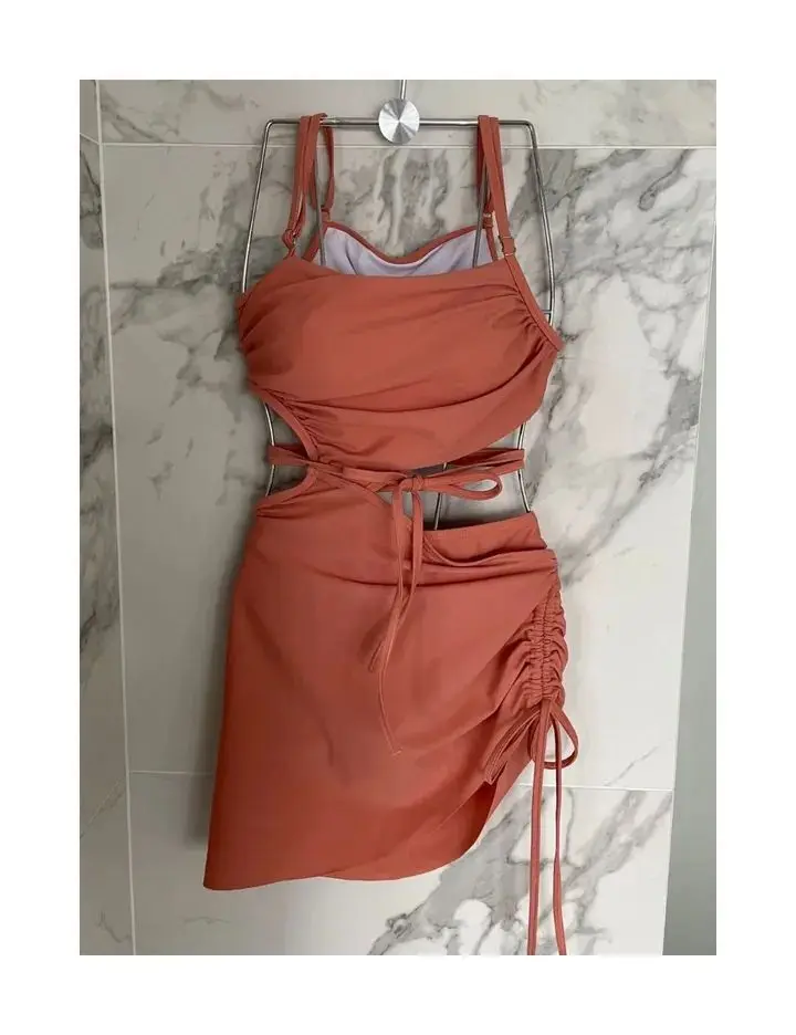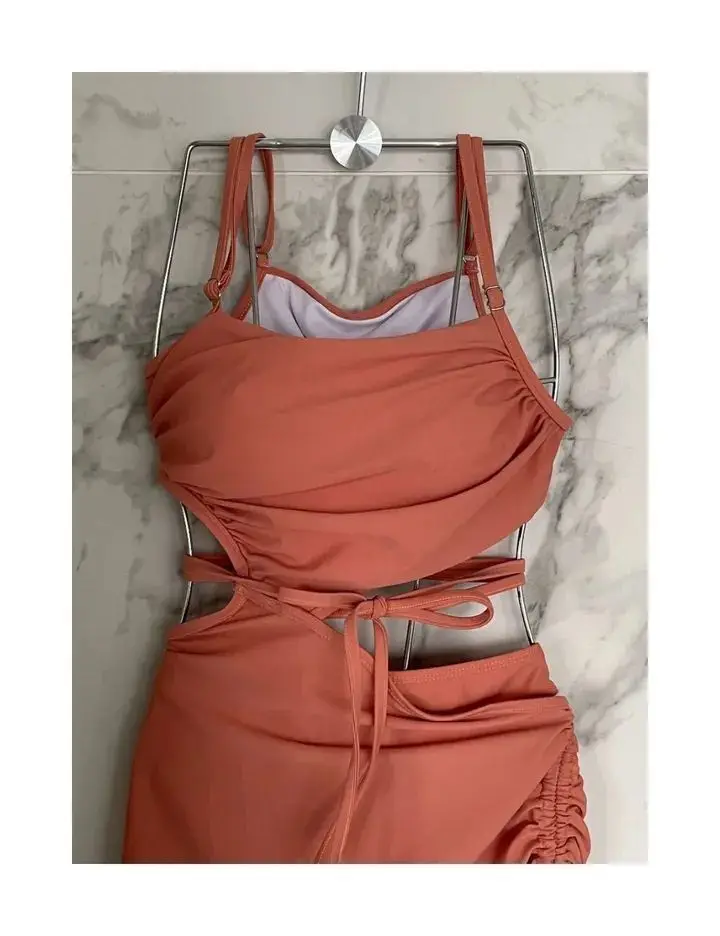 Sexy One Piece Dress Swimsuit Women Cut Out Bathing Suit Swimwear Monokini Bandeau Bathing Suit Korean Padded Beach Wear Orange