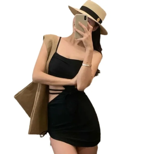 Sexy One Piece Dress Swimsuit Women Cut Out Bathing Suit Swimwear Monokini Bandeau Bathing Suit Korean