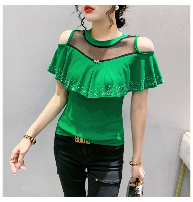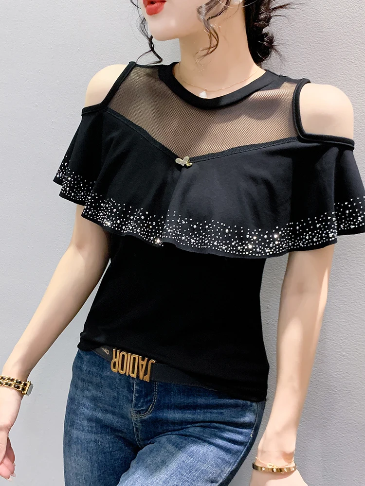 This T-shirt features a sexy shoulder bared design, perfect for showing off your stylish side and adding a touch of allure to your summer wardrobe.