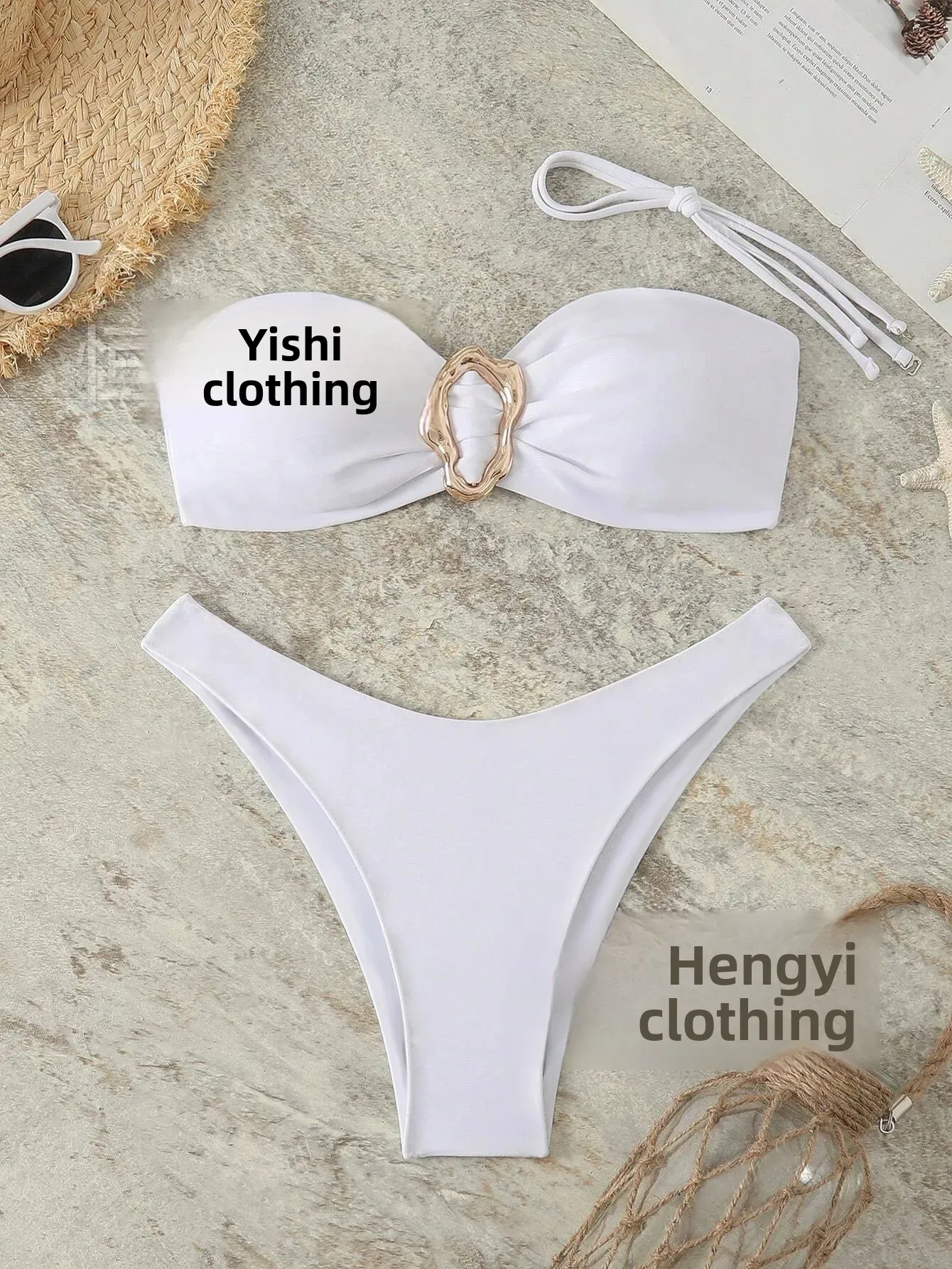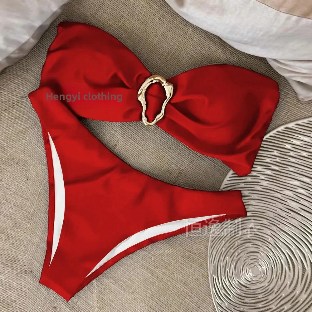 Sexy Pure Color Bikini Strapless Split Women’s Swimsuit Cross-Border Ladies Swimwear Hot Sale Of