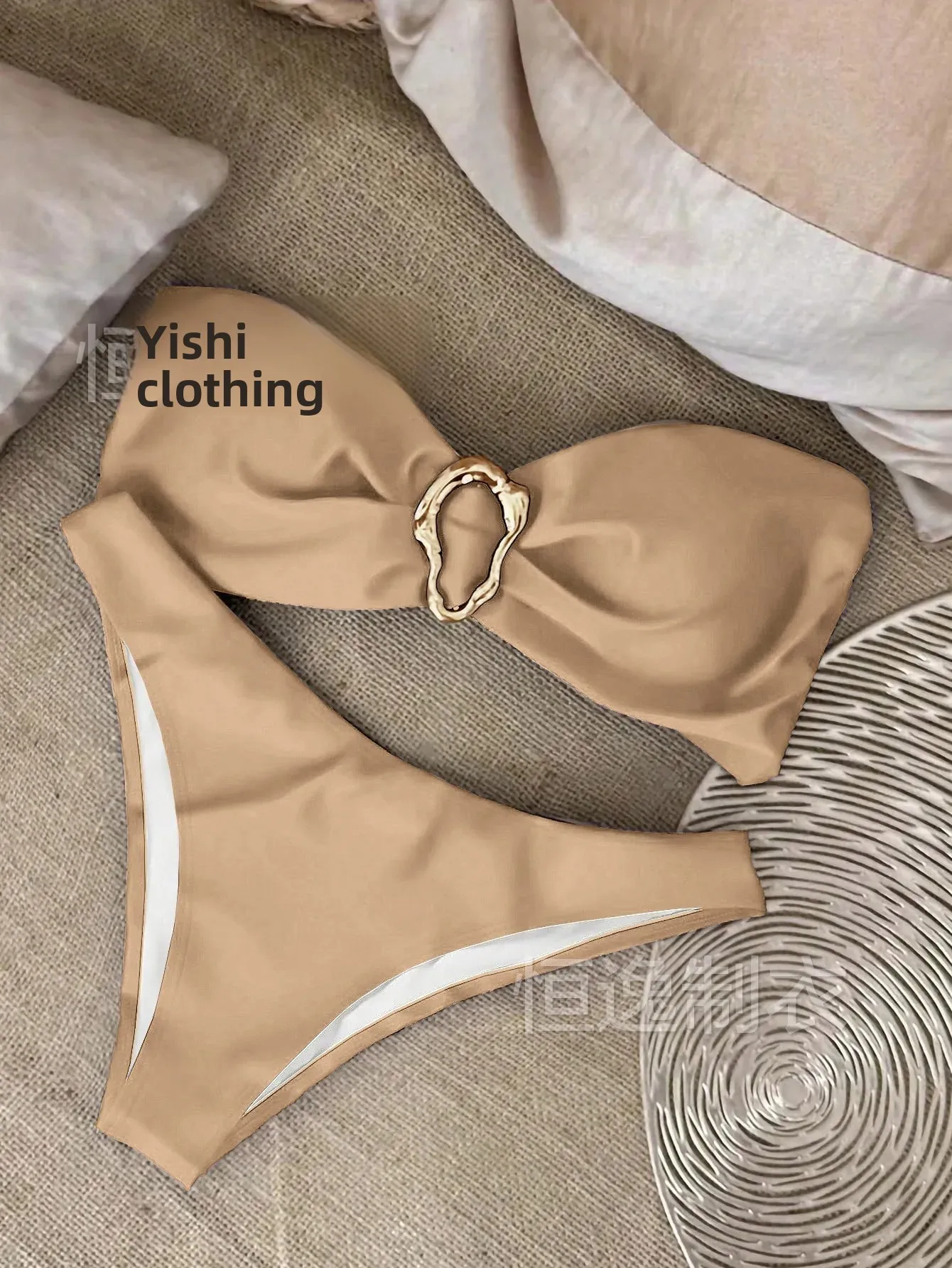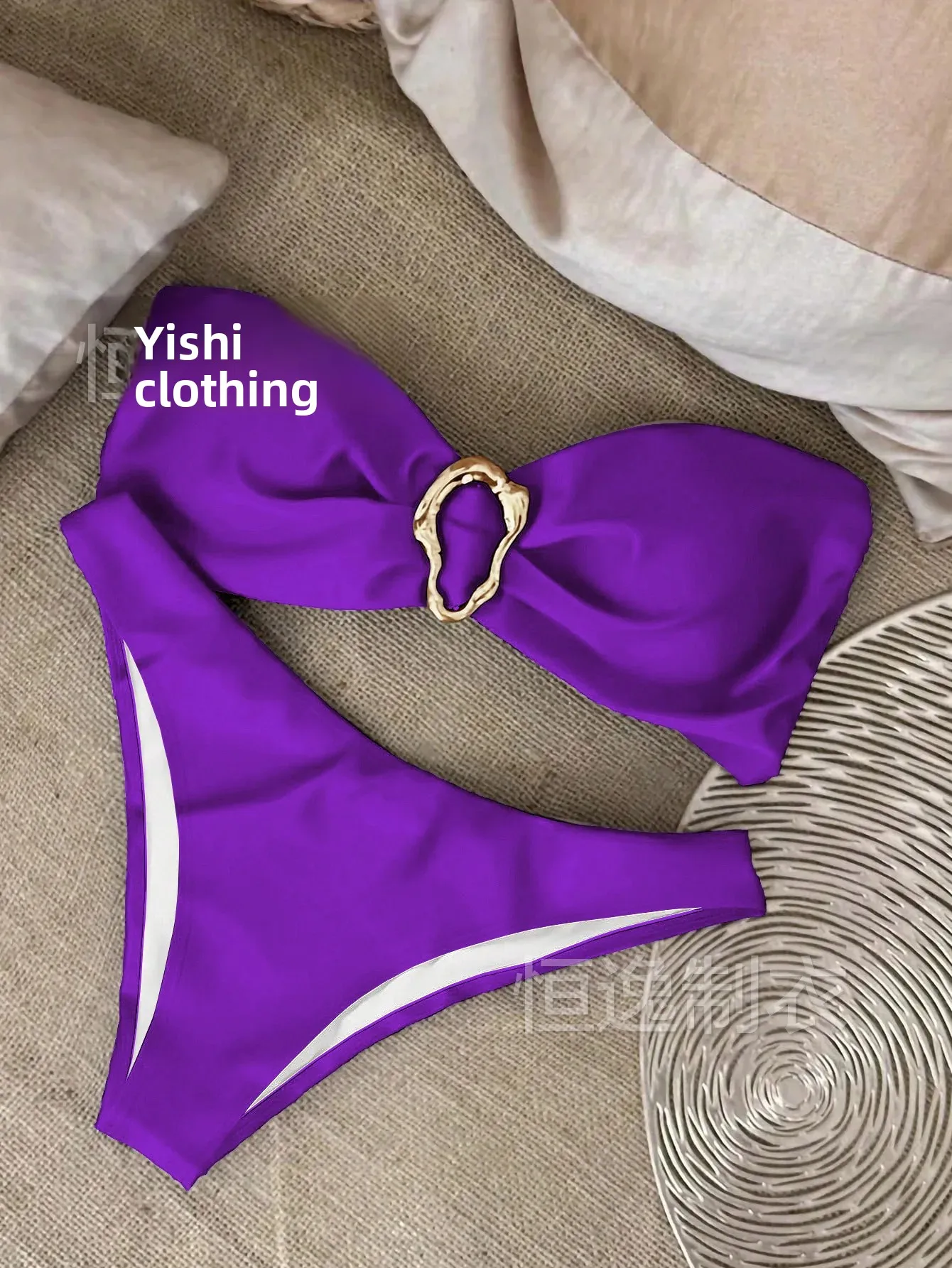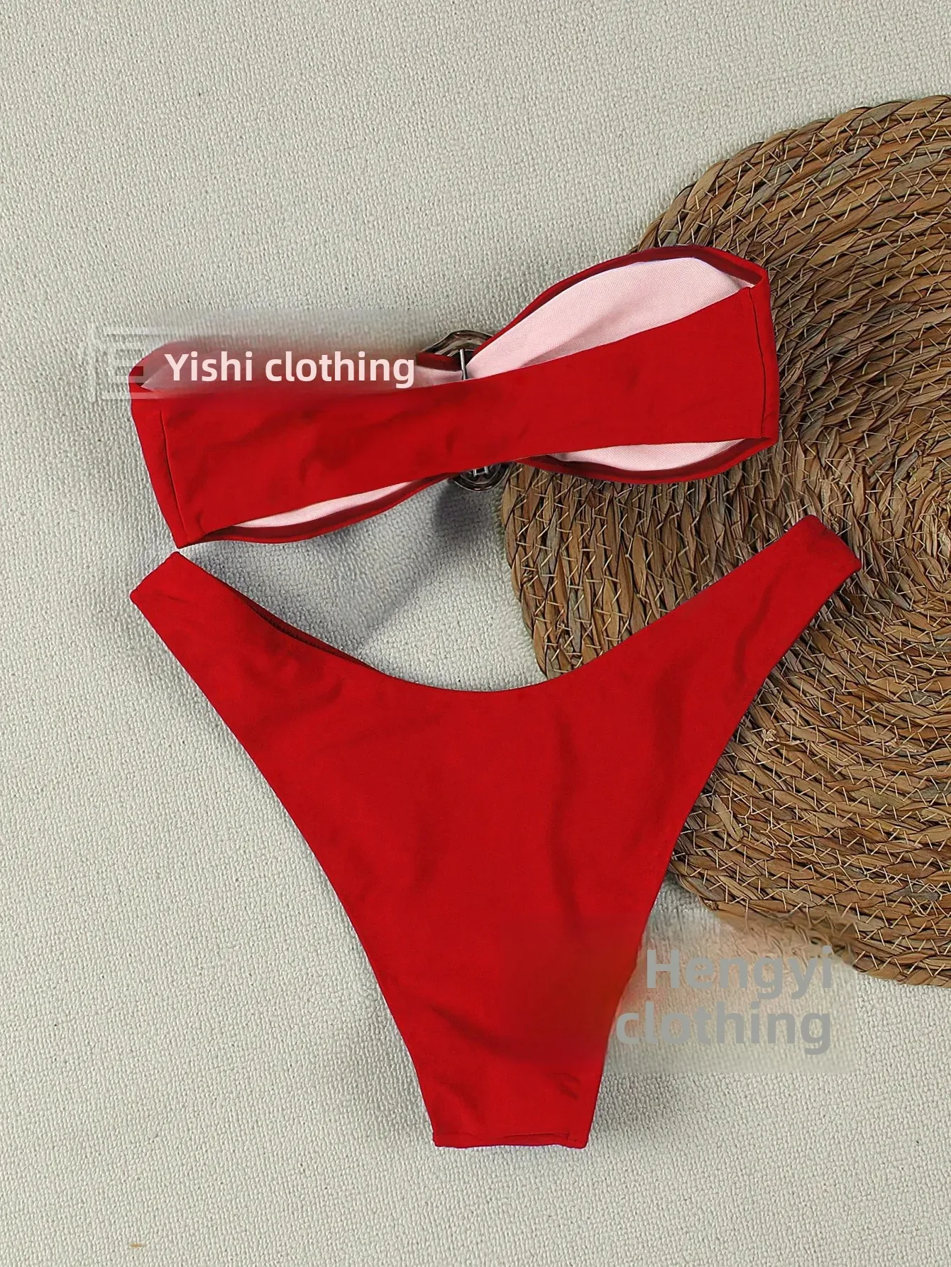 Sexy Pure Color Bikini Strapless Split Women's Swimsuit Cross-Border Ladies Swimwear Hot Sale Of The Season New Arrival Female F