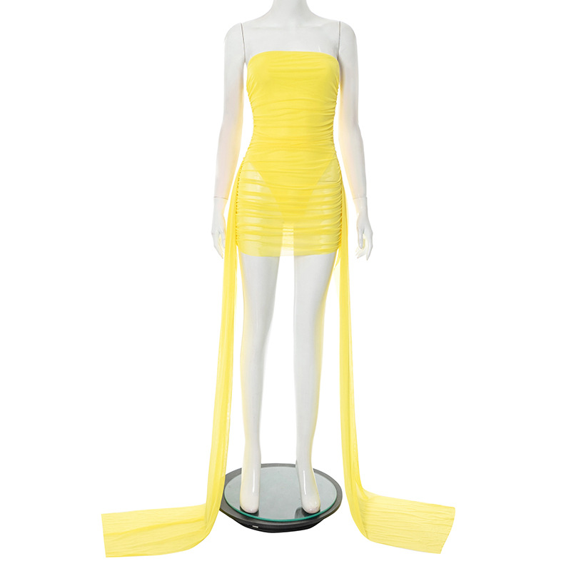 Woman Dress Elegant Sweet Sleeveless Ruffles Mesh Loose Summer New Cake Mini Dresses Solid Sexy Female Casual Fairy 2026