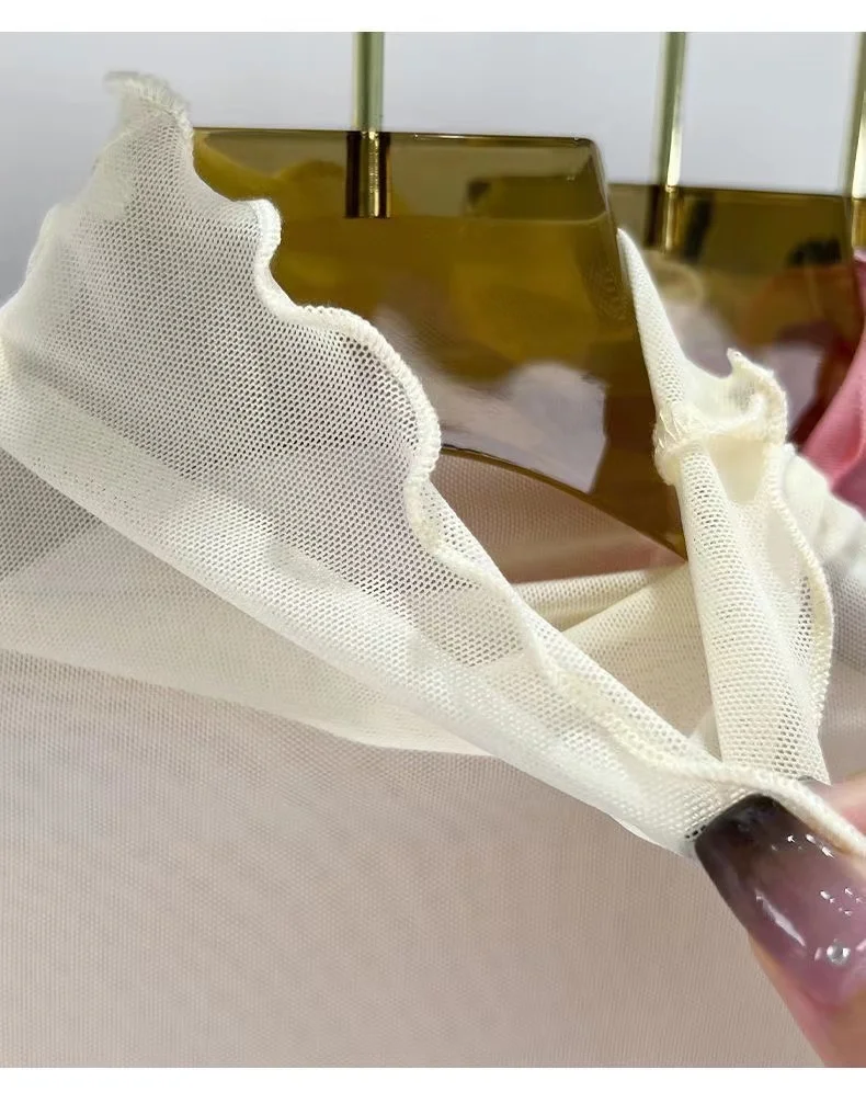 Sexy Semi-Transparent Lace Base irt Women’s Thin High Collar Autumn Spring Slim Fit Me Underwear