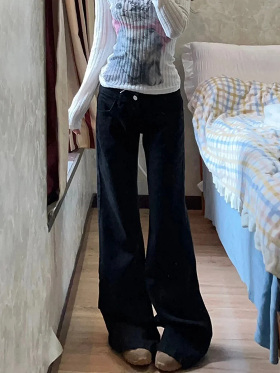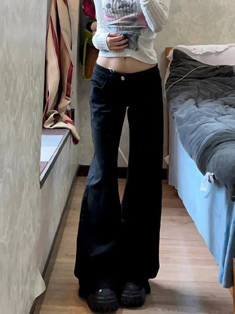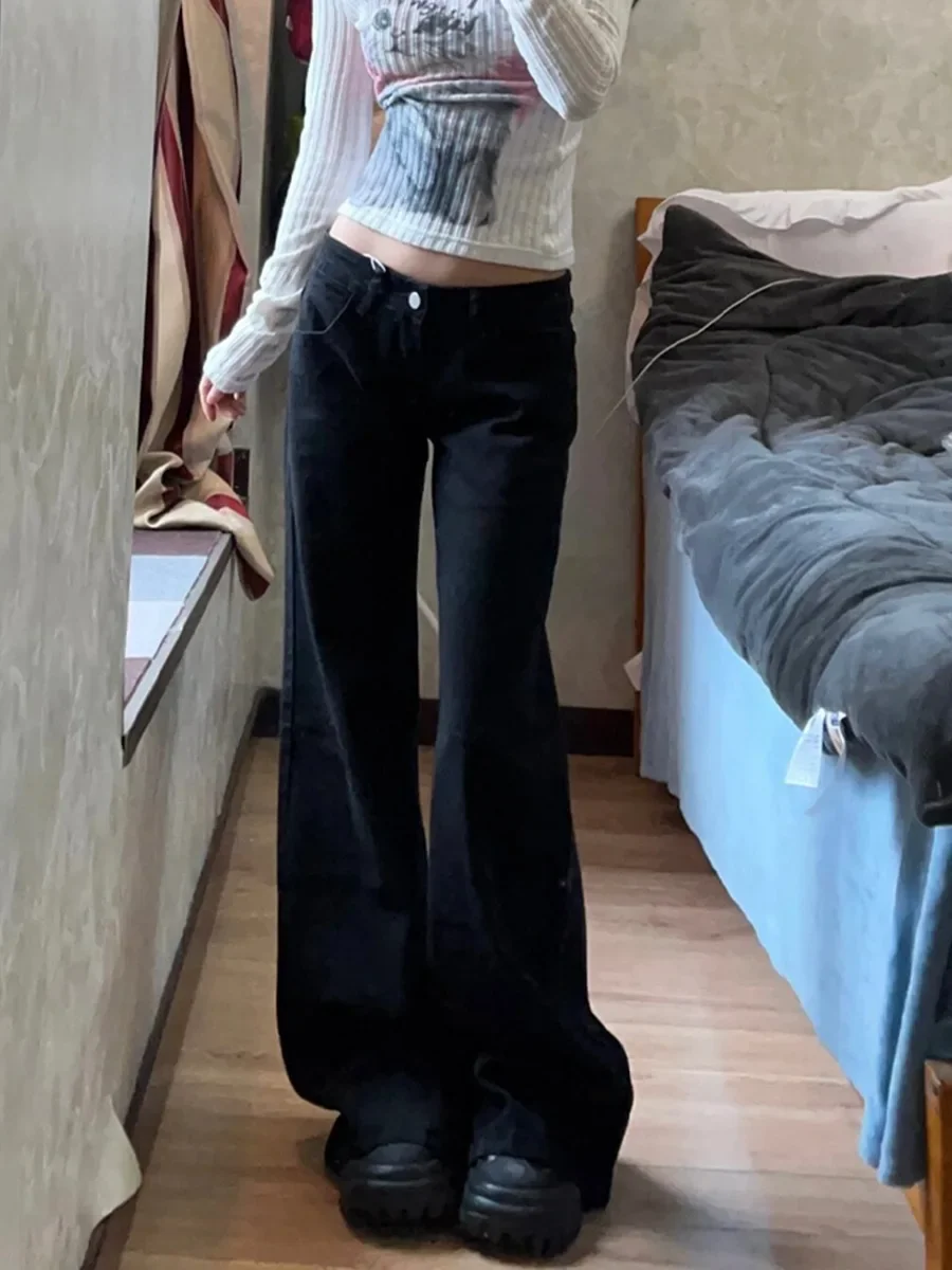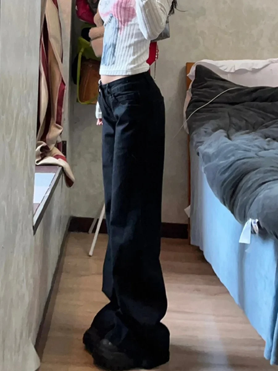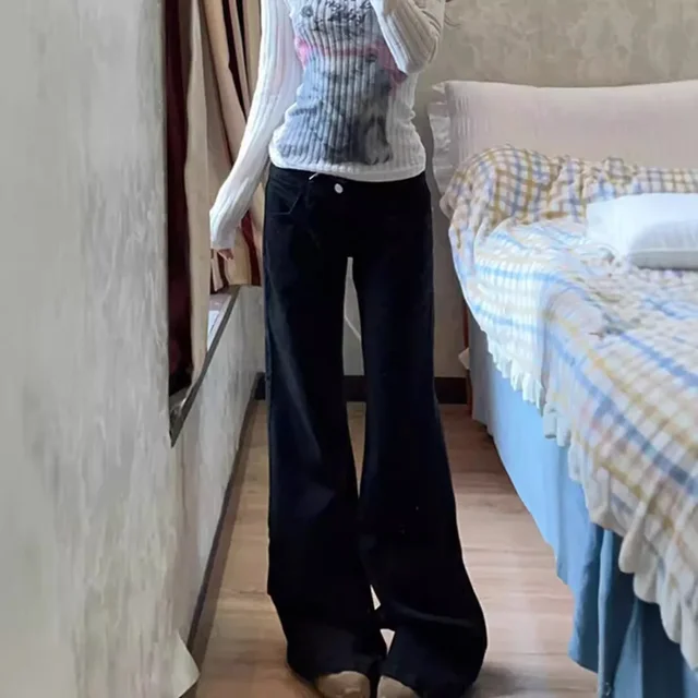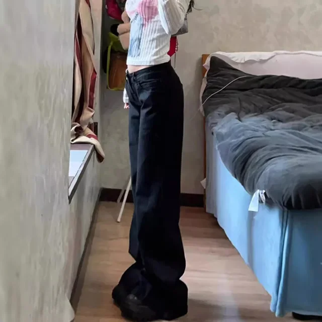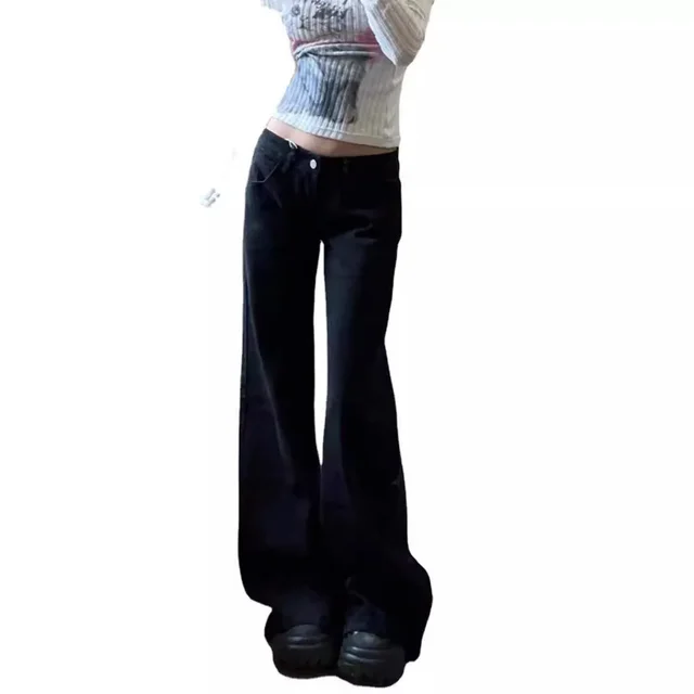 • Low-rise Design :The Hot Girl Low-rise Black Wide-leg Slimp Jeans are designed with a trendy low-rise style, perfect for the modern woman who wants to show off her style and confidence.