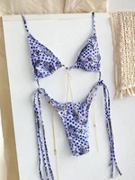 Sexy Triangle Chains Bikini Sets Micro Thongs Swimsuit Women Bathing Suit Biquini Bandage Beachwear Print
