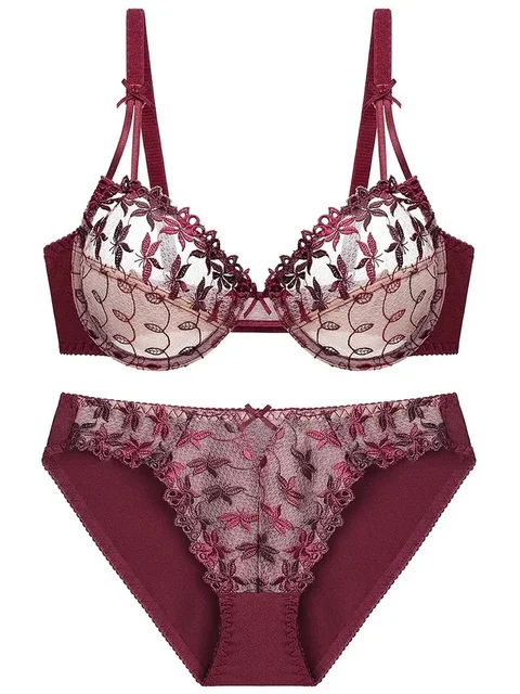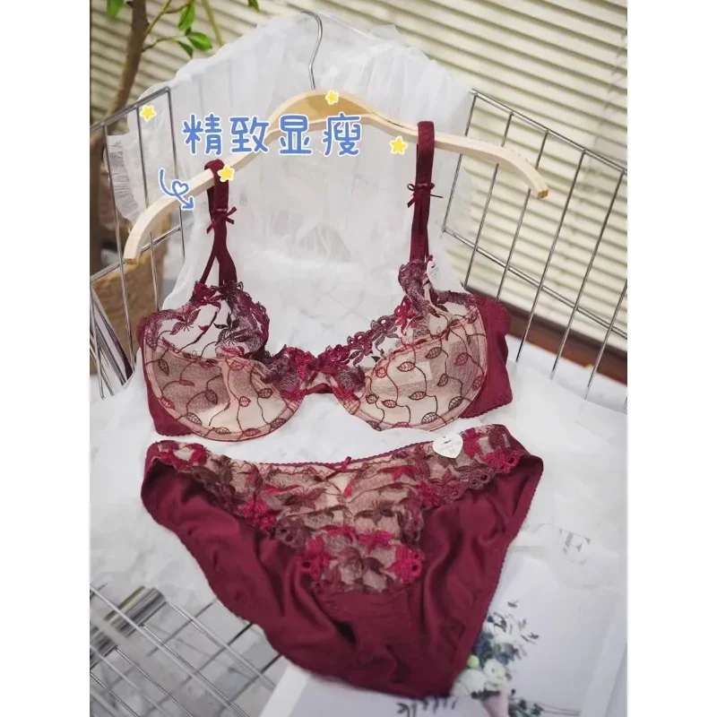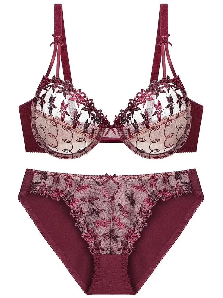 Sexy Ultra-Thin Red Lace Bra Set | Plus Size Minimizer Full Bust Underwear| Zodiac Year Women’s