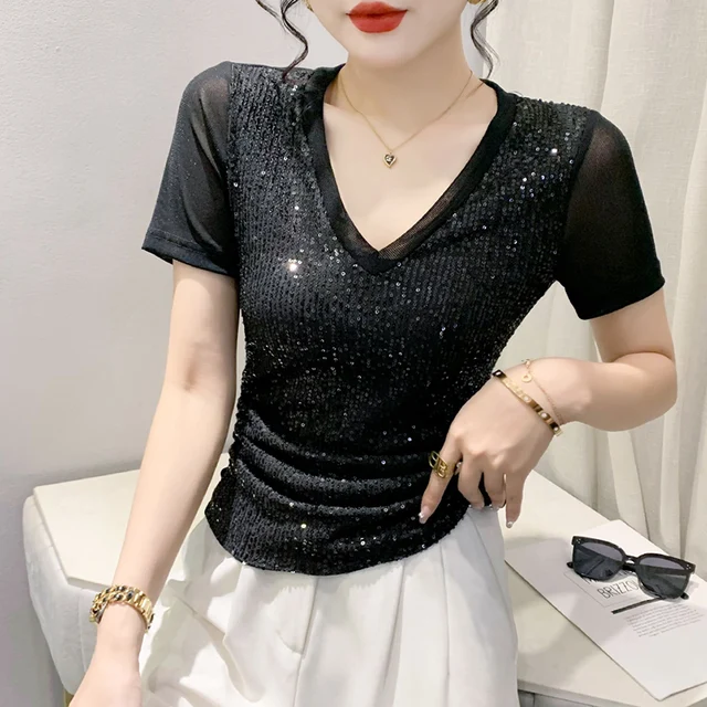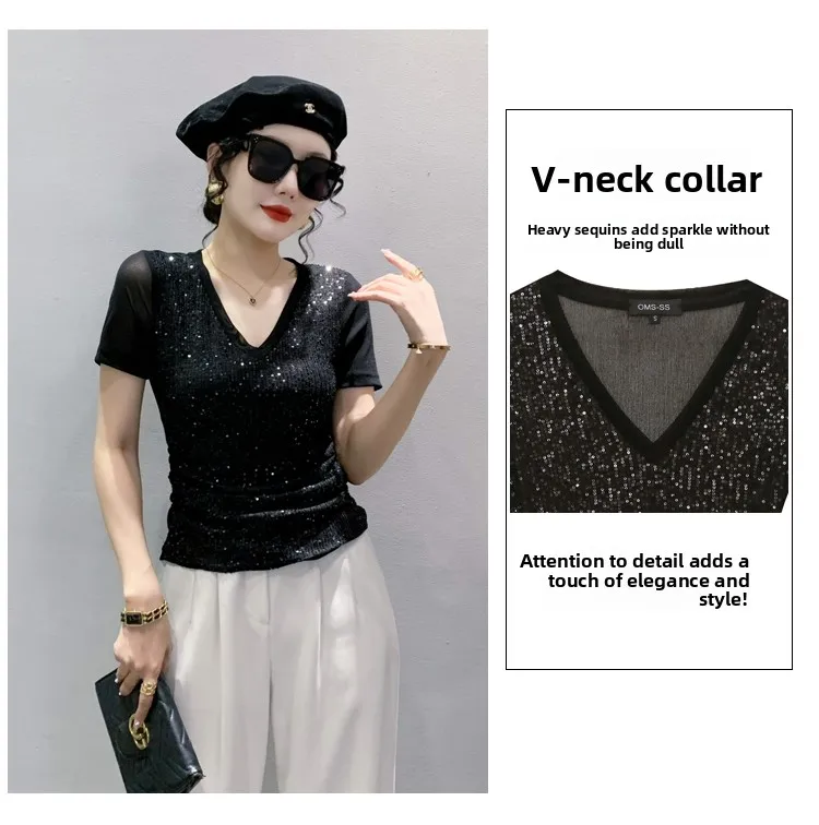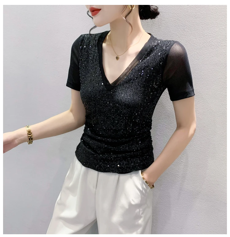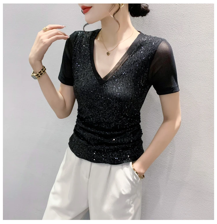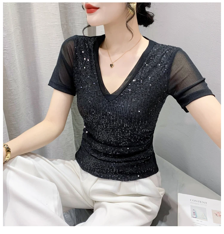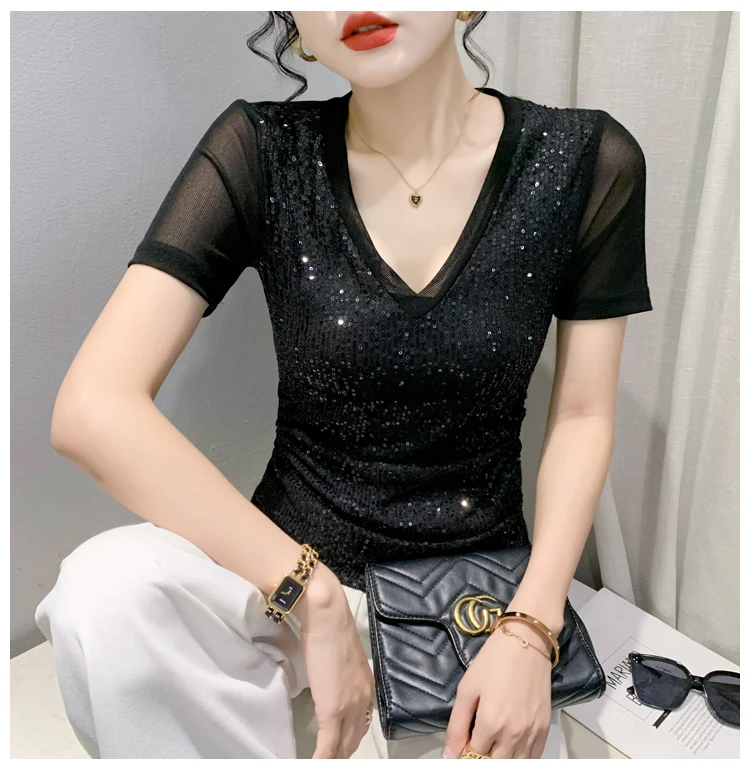 The V-neck design adds a touch of sexiness to this T-shirt, making it a perfect choice for those who want to stand out.