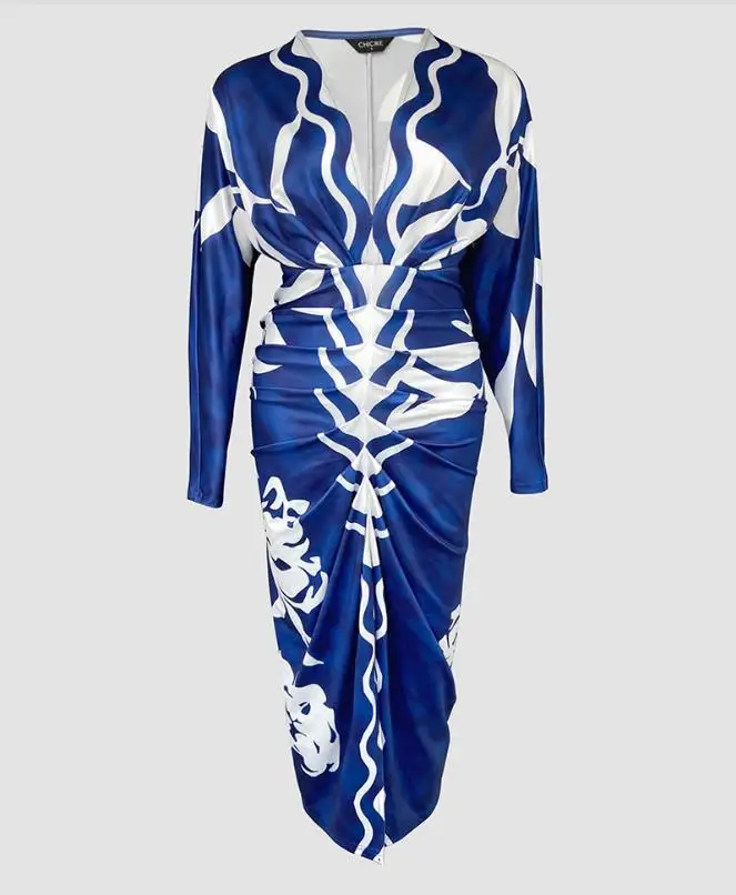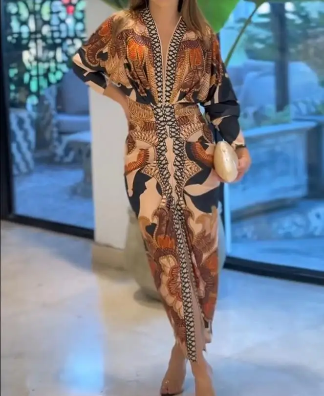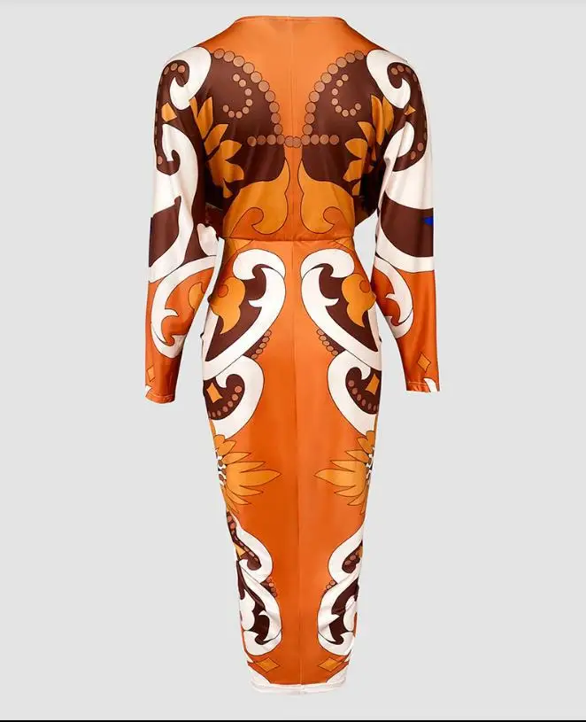 Be the first to review “Sexy V-neck Long Sleeve Printed Dress High Waist Split Polyester Women’s Fashion Elegant Commute”