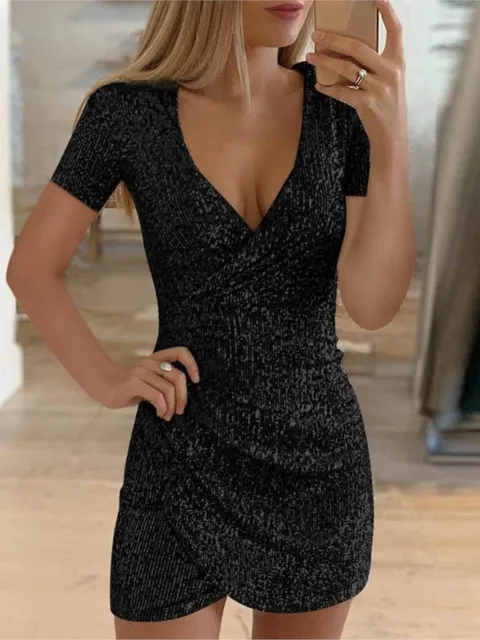 Be the first to review “Sexy V-neck Package Hip Irregular Dress For Women Fashion Sequin Shiny Short-sleeve Mini Dress Elegant”