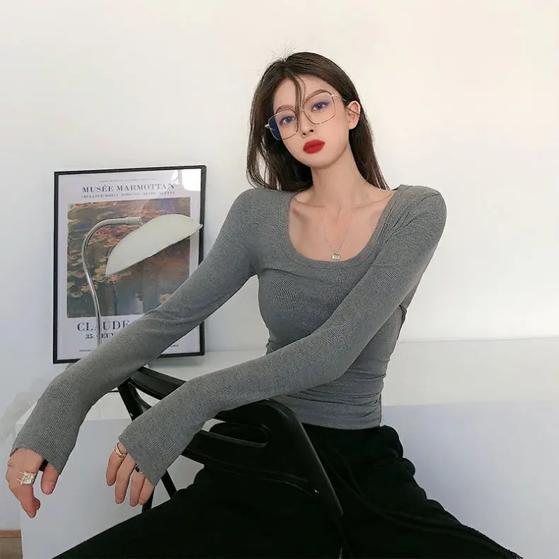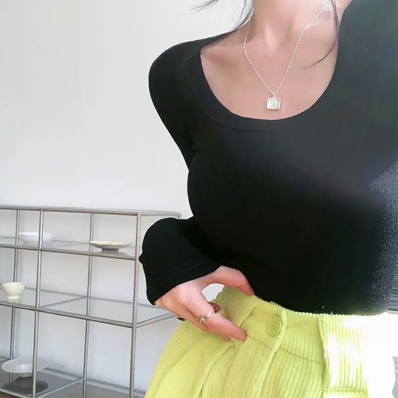 Be the first to review “Sexy White round Ne Base irt Women’s Spring Autumn Tight Fit Long Sve Low Collar T-irt Commute”
