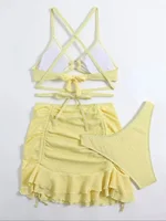 Sexy String Bandeau Swimsuit Bandage Bikini Wrinkles Pleated Push Up Swimwear Women Beach Outfits Bathing Suits Bikinis De Mujer