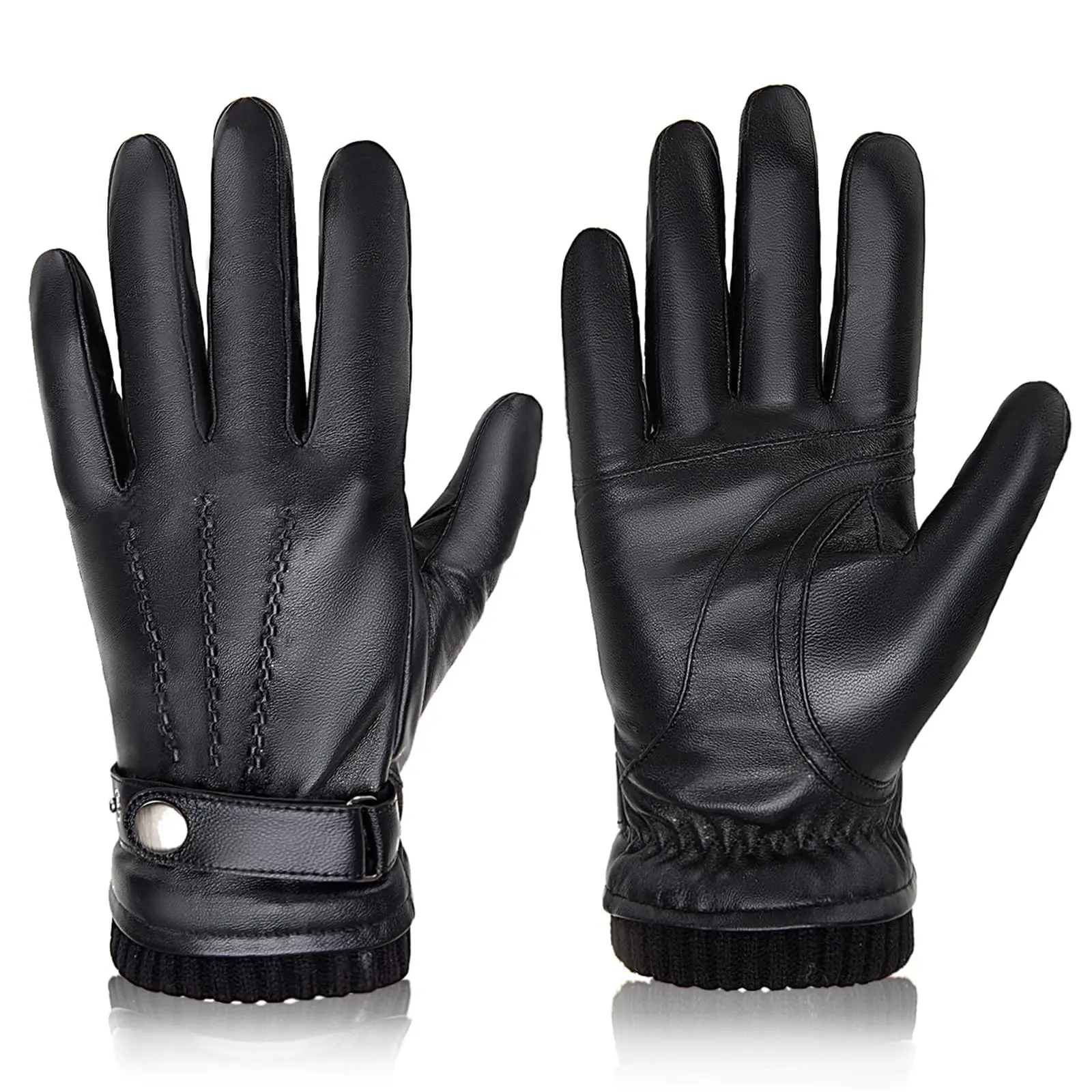 1. Genuine Leather Gloves:The winter golves is made of 100% pure sheepskin leather, which will offer you a soft and comfortable feeling in wearing them. The leather is of high quality and durable for long time use, giving you a high fashion look.