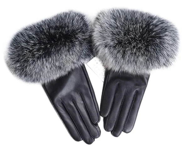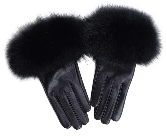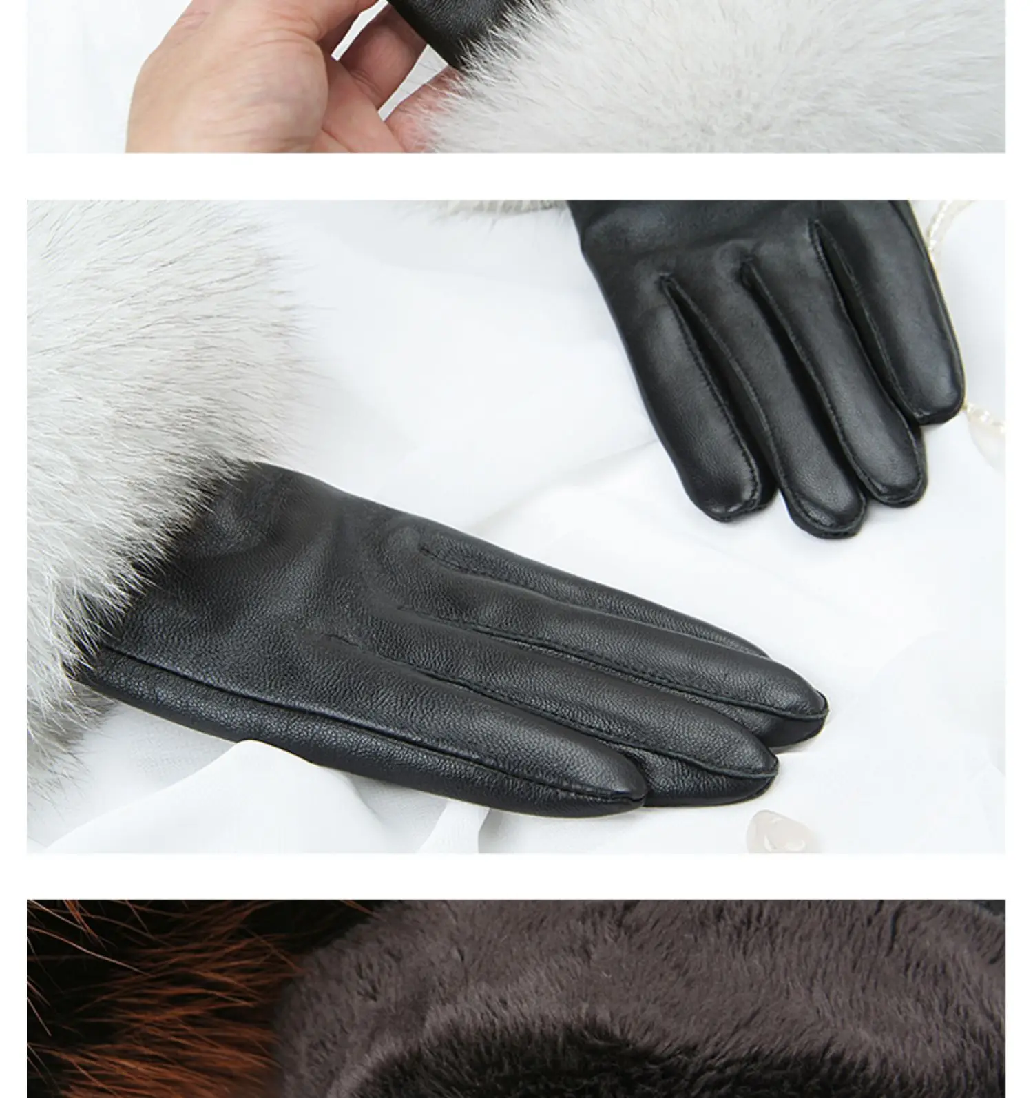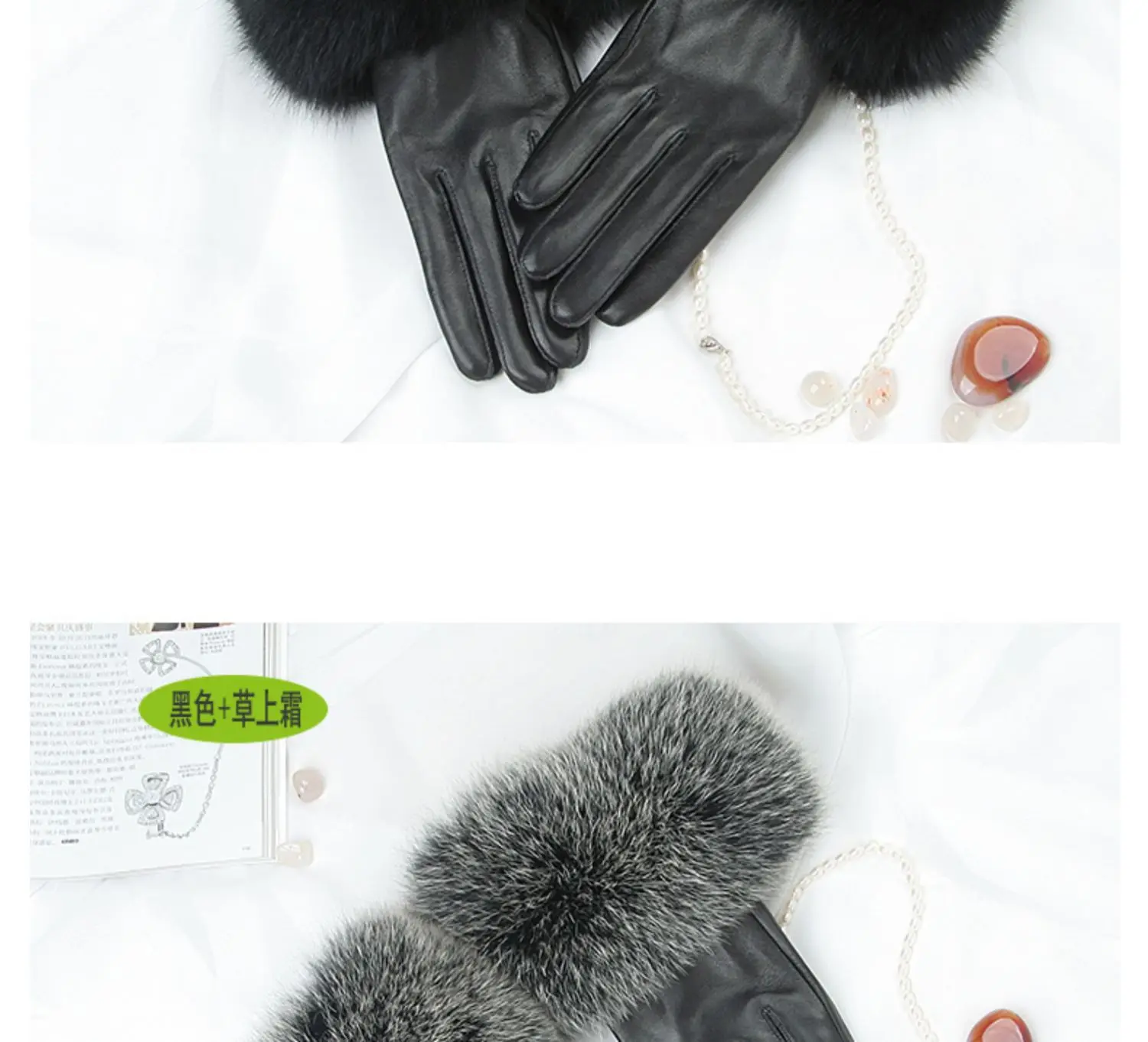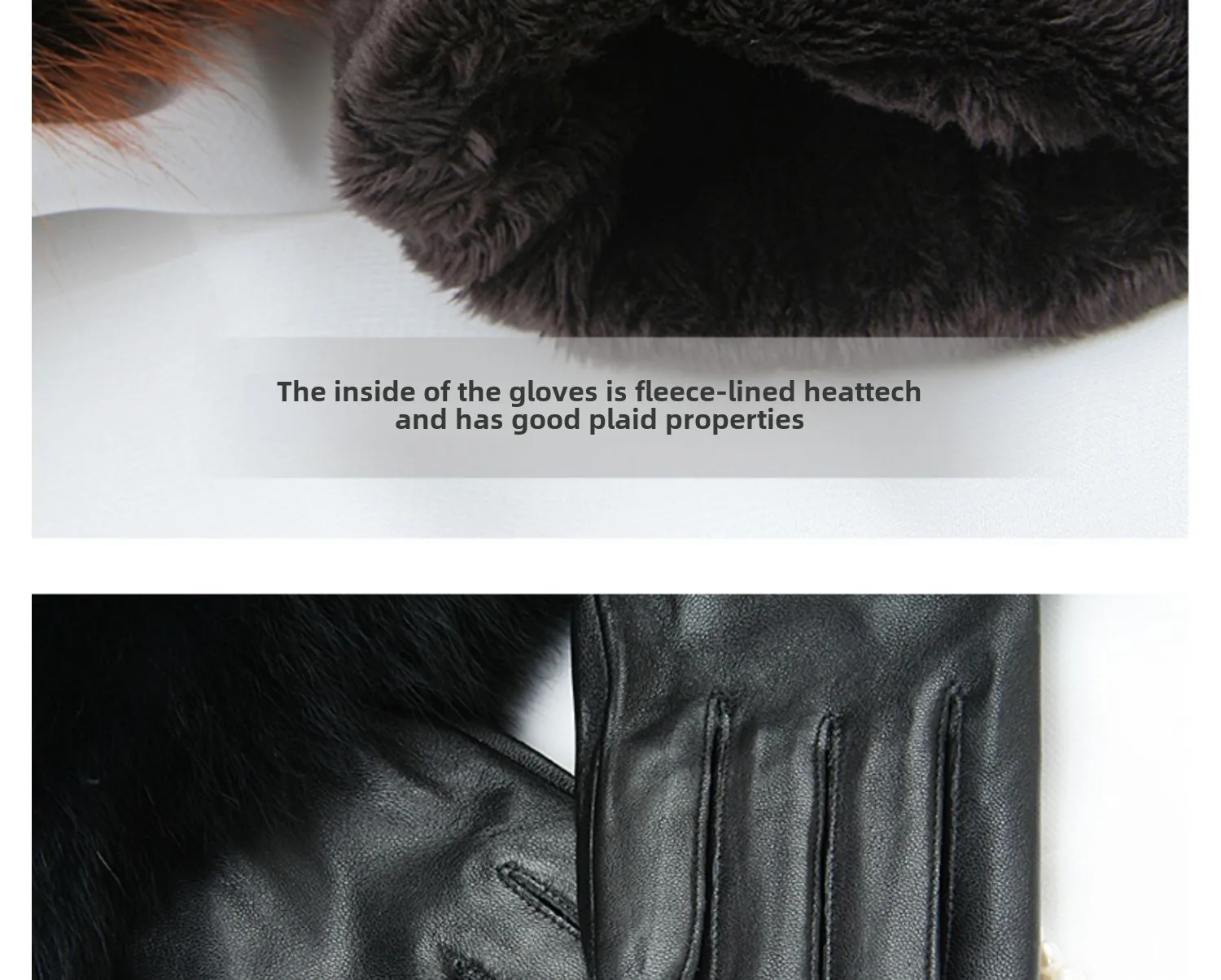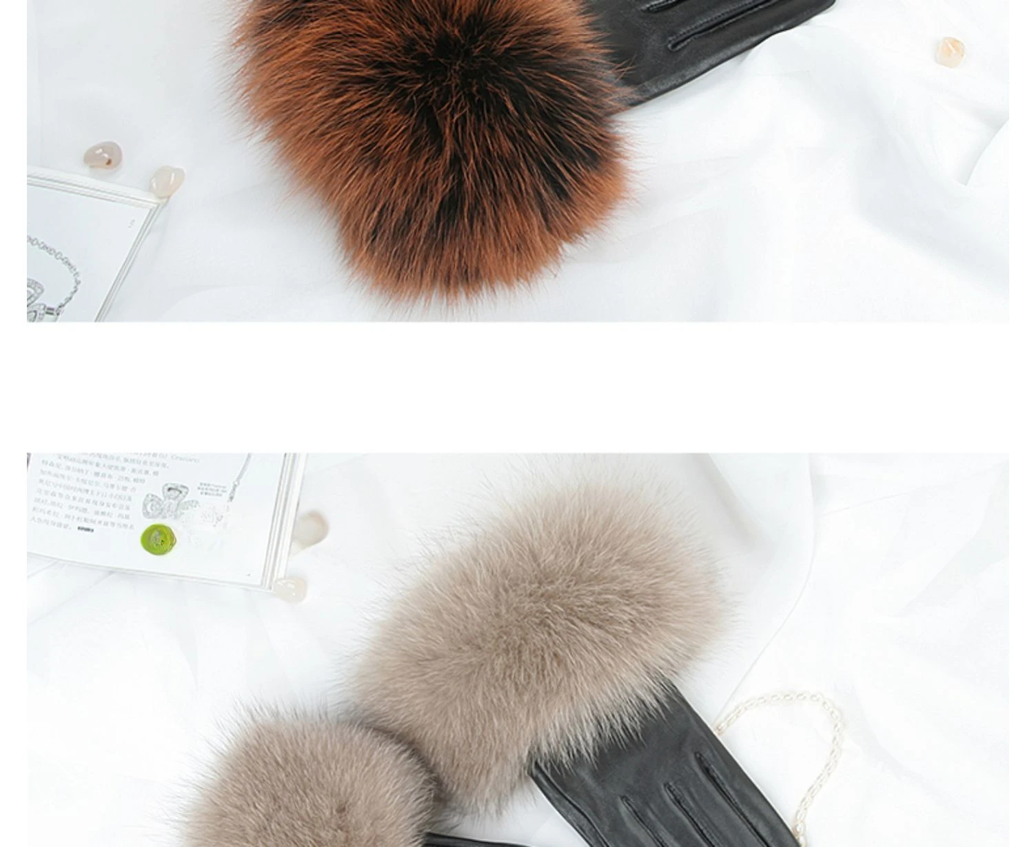 Sheepskin Natural Fox Fur Trimming Gloves Women’s Genuine Leather Wrist Warmer Glove Winter Warm