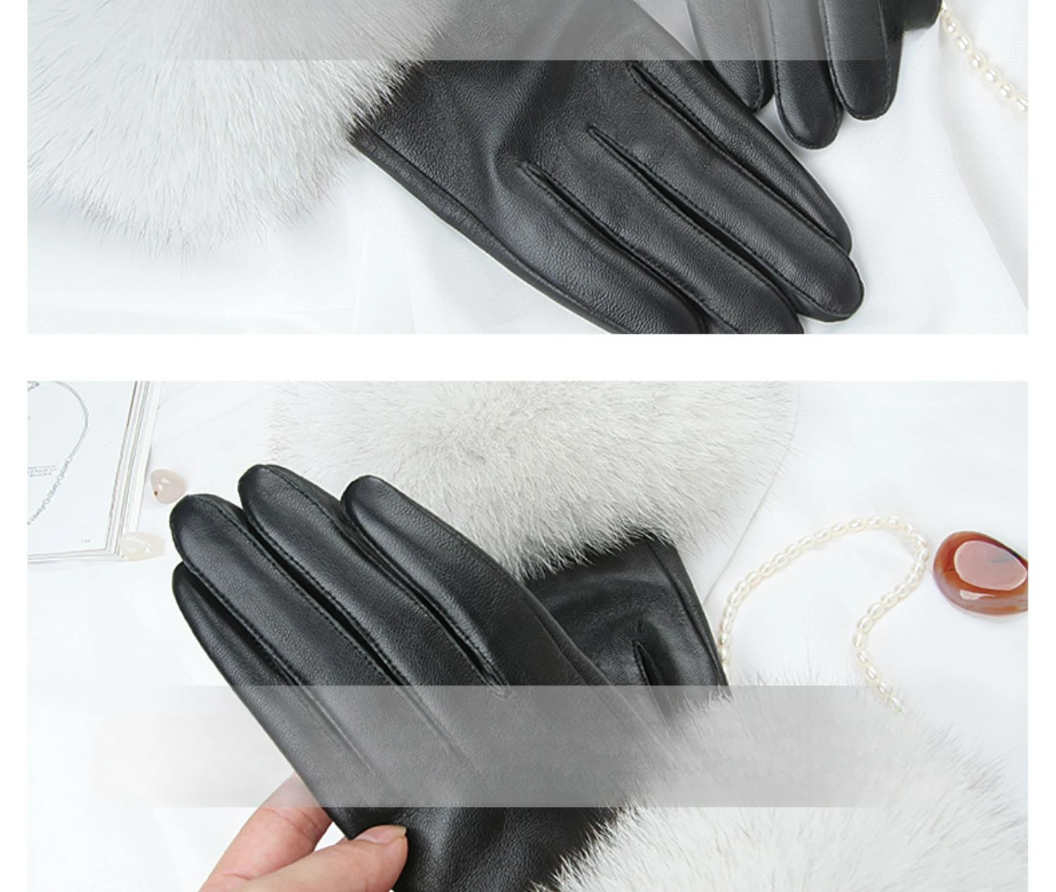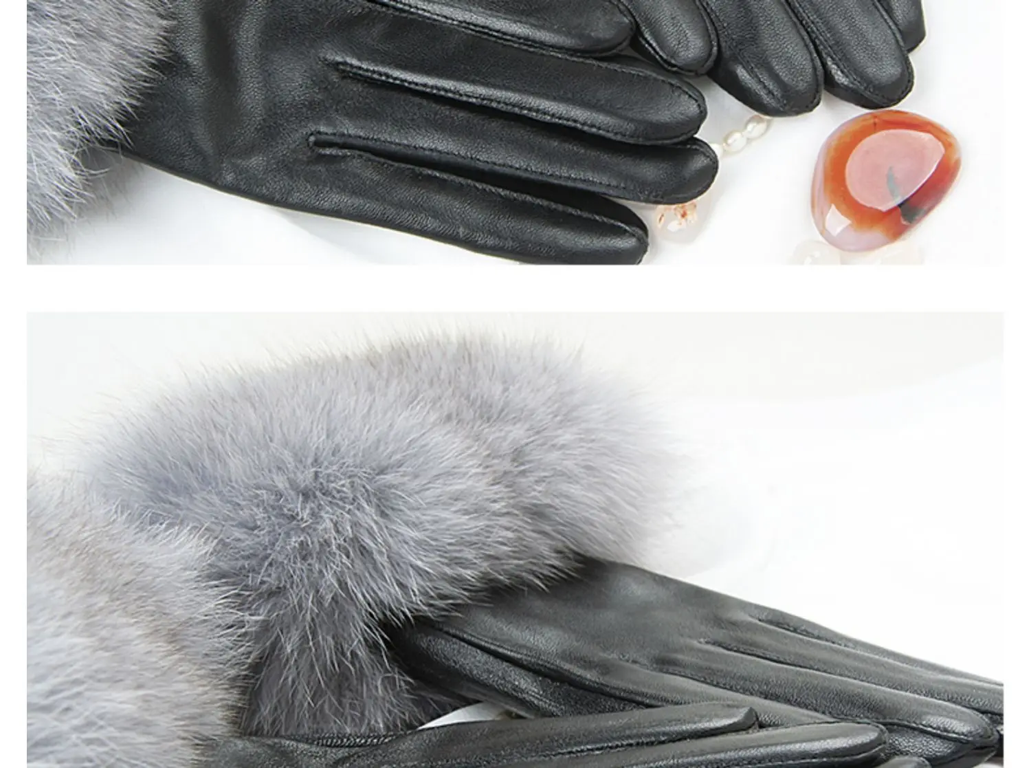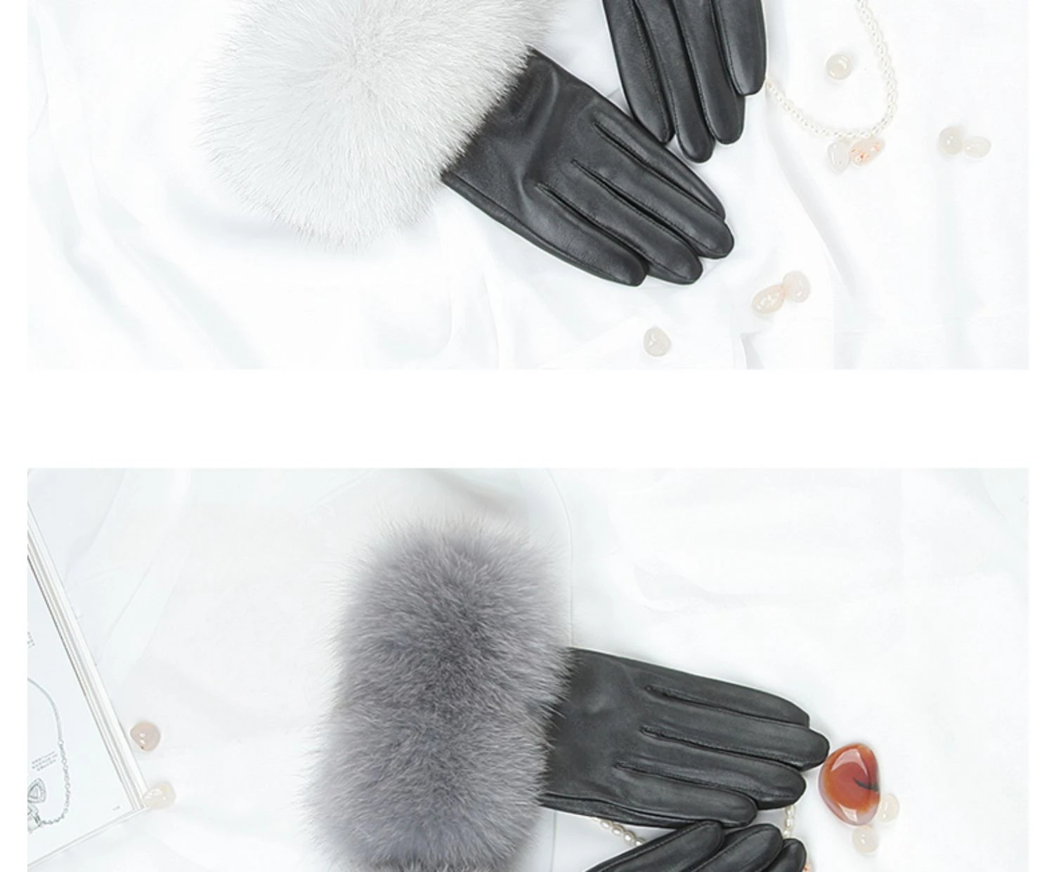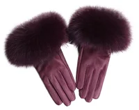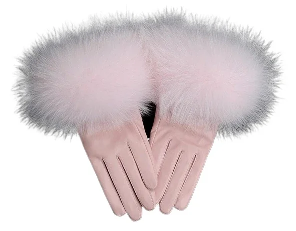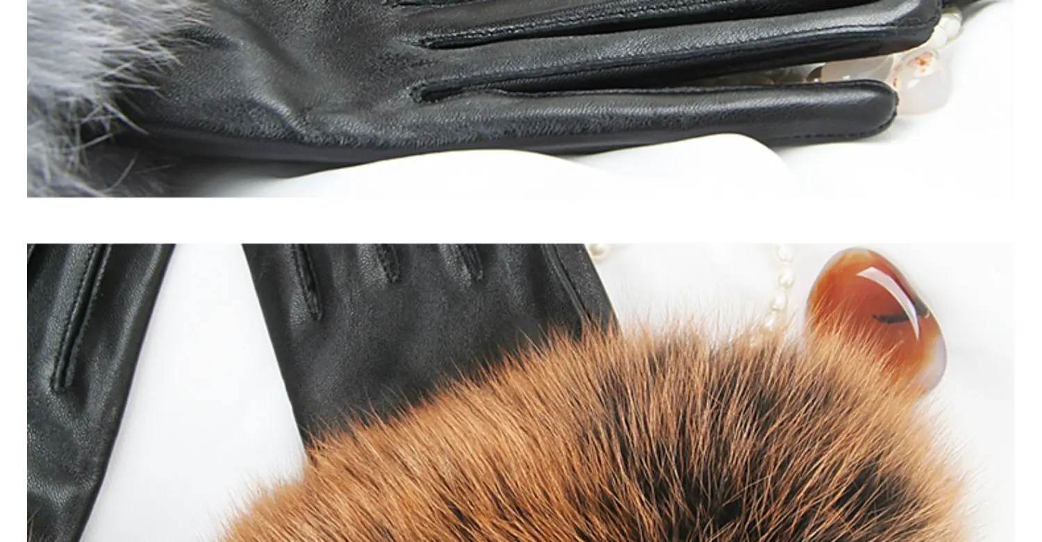 Sheepskin Natural Fox Fur Trimming Gloves Women’s Genuine Leather Wrist Warmer Glove Winter Warm