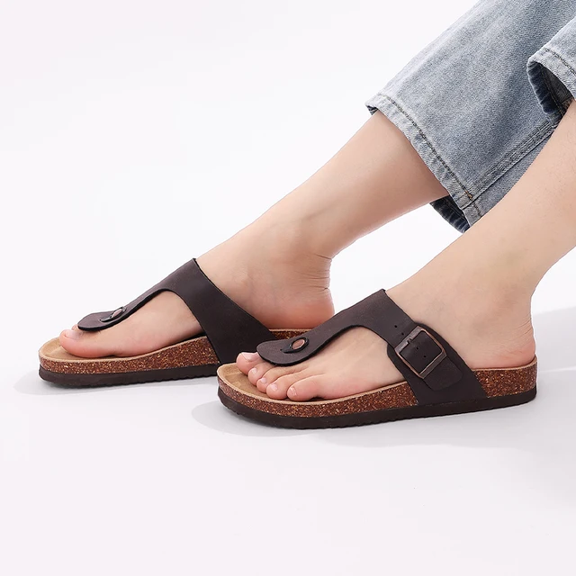 Shevalues Summer Cork Slippers For Men Soft Sole Home Slides With Arch Support Flat Flip Flops Mens Cozy
