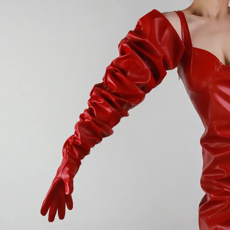 • Patent Leather Material : Crafted from high-quality patent leather, these gloves offer a shiny, luxurious finish that is both durable and stylish.