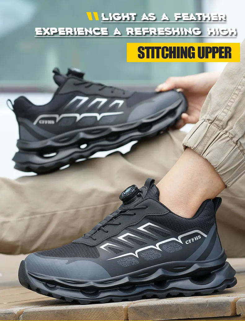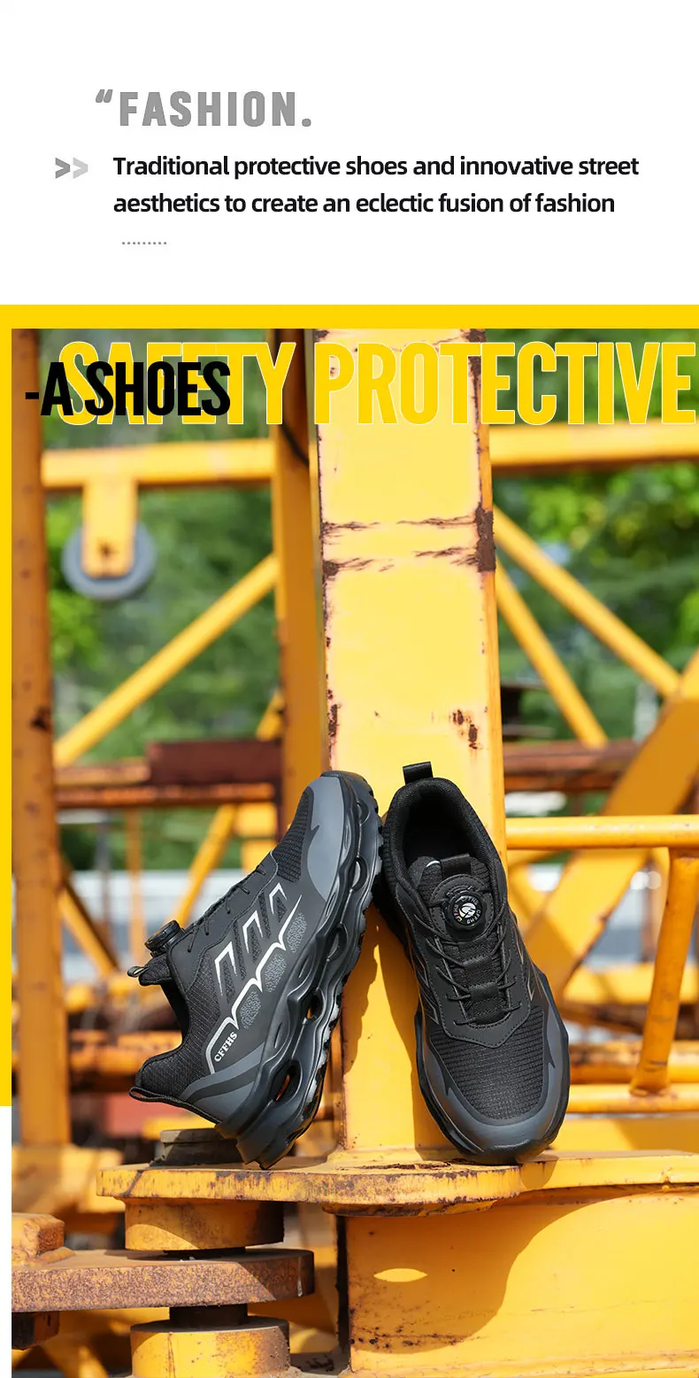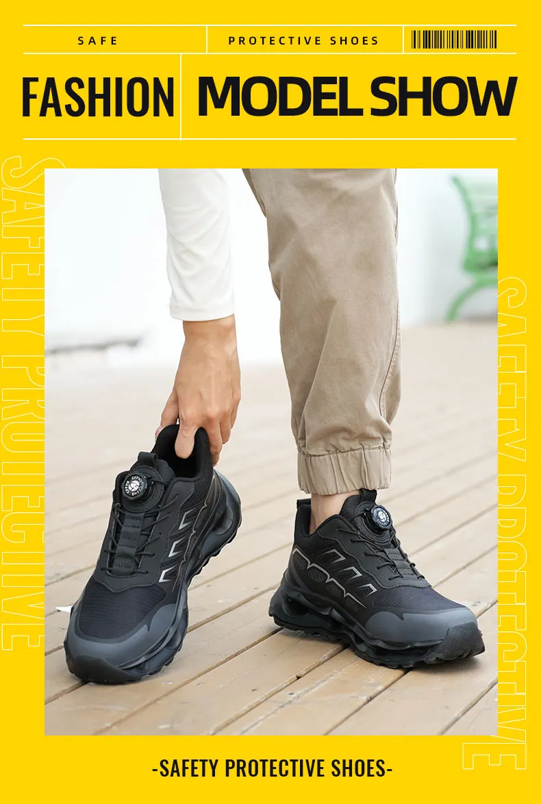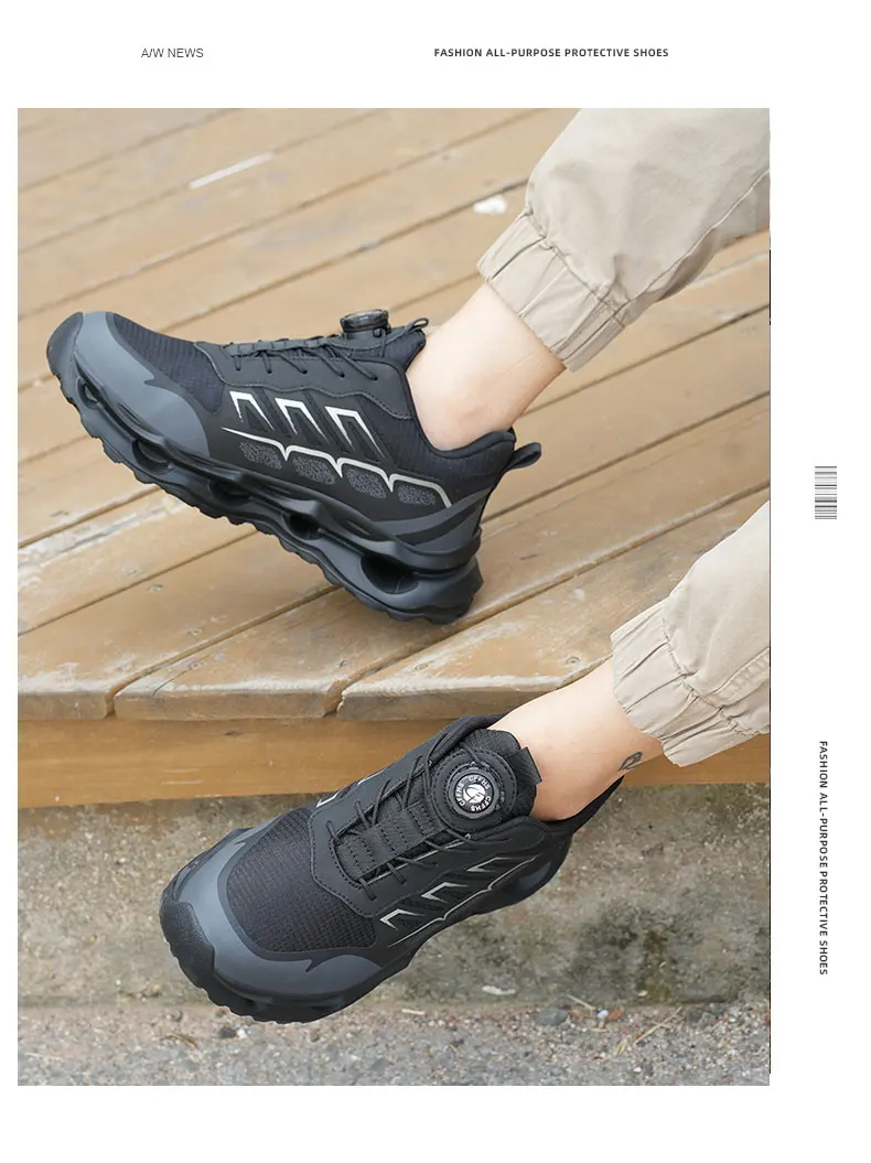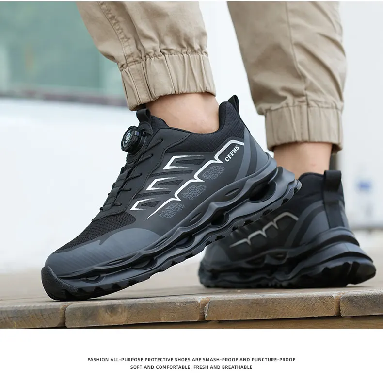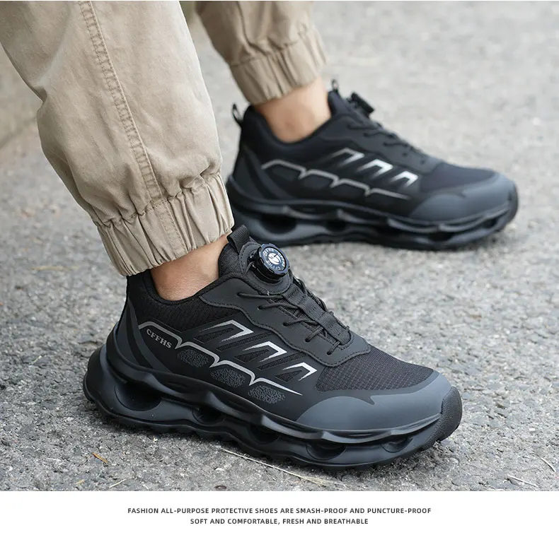 New Men's Rotary Buckle Safety Shoes Anti-Impact Anti-Piercing Lightweight Work Boots Fashion Sporty Design for Outdoor Pro