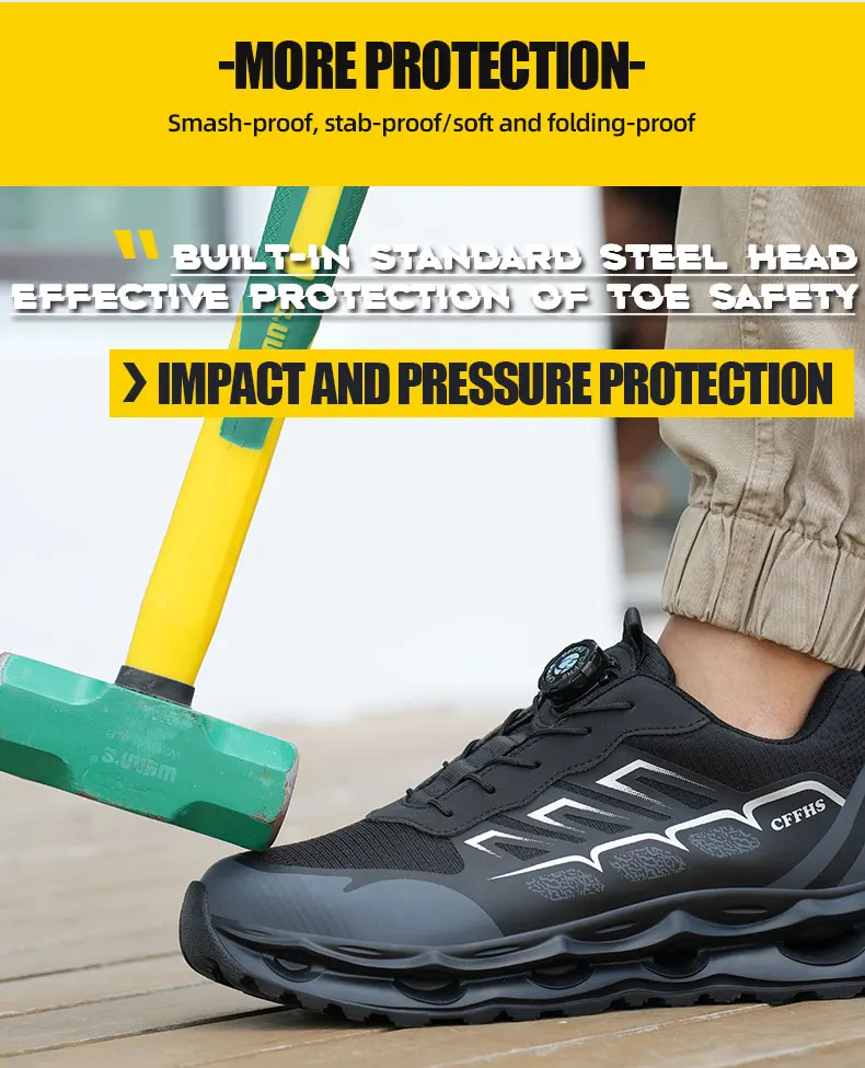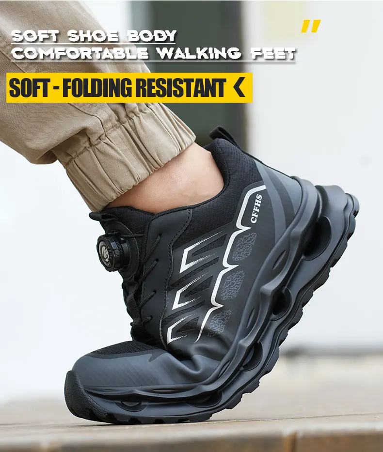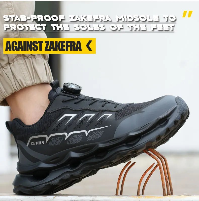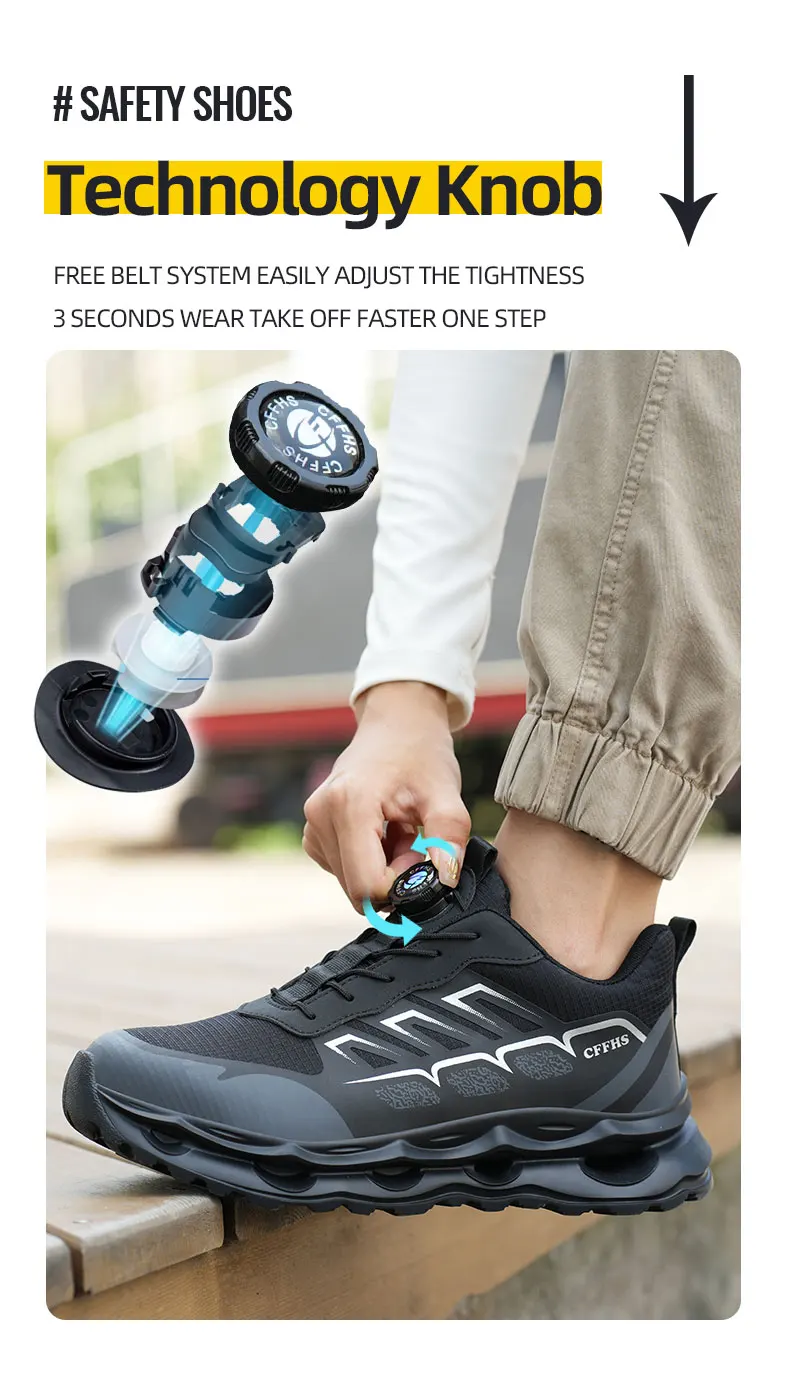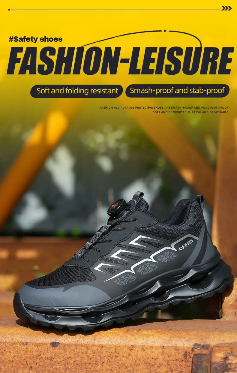 New Men's Rotary Buckle Safety Shoes Anti-Impact Anti-Piercing Lightweight Work Boots Fashion Sporty Design for Outdoor Pro