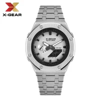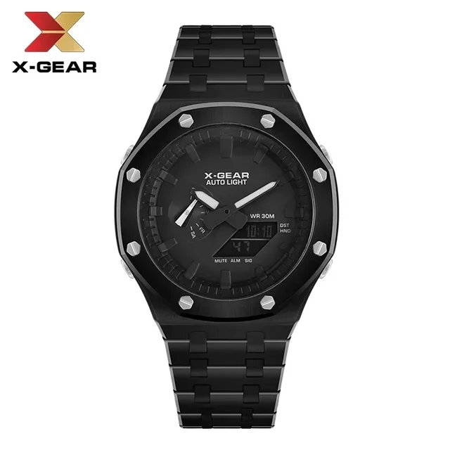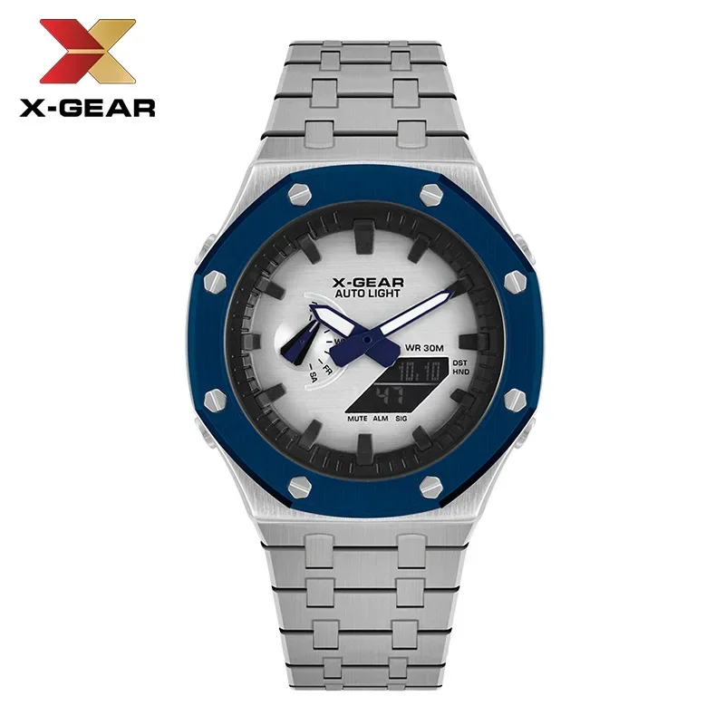 shock resistance Watch GMB Sport Digital Electronic Unisex 2100 Watch Steel Strap LED Dual Display Oak Series