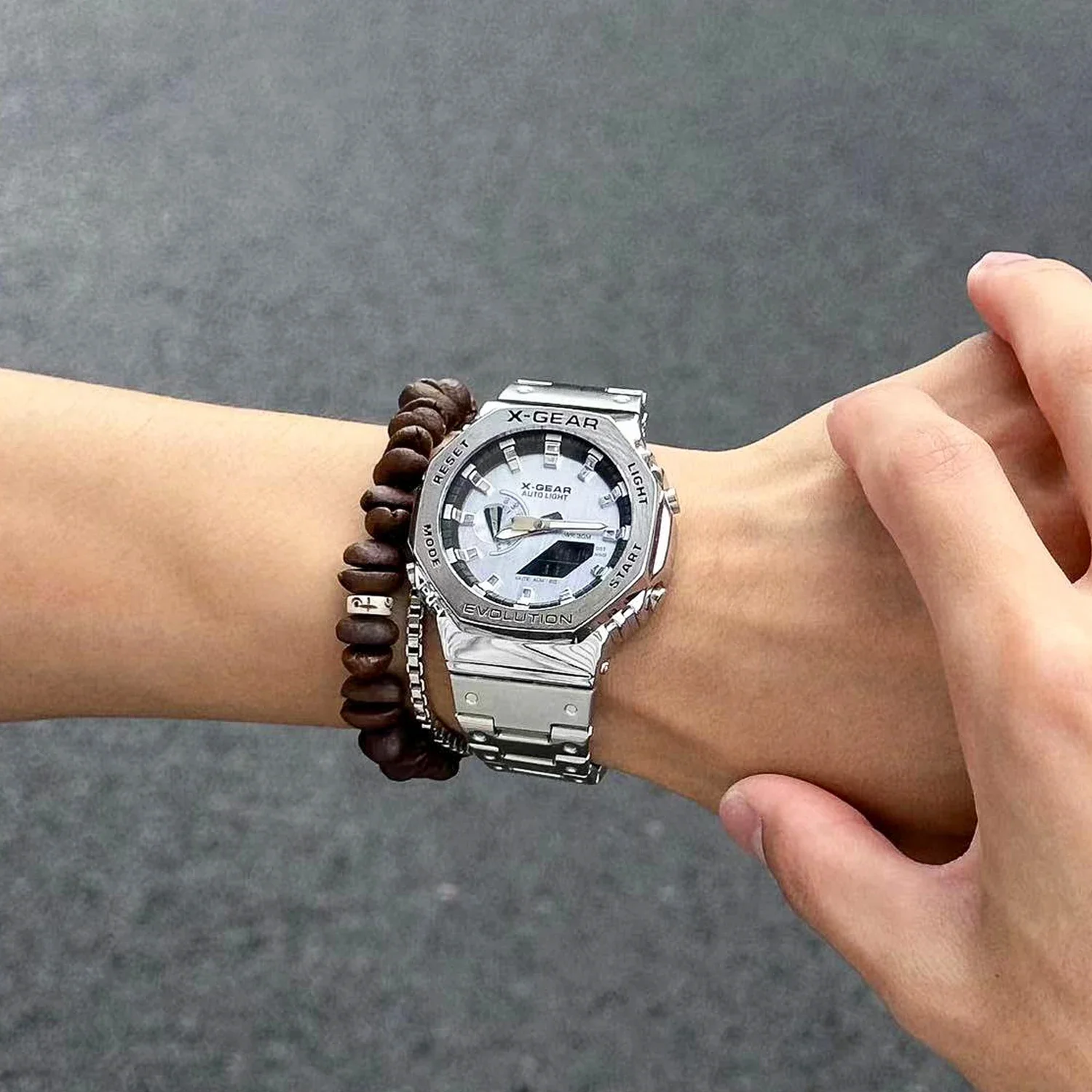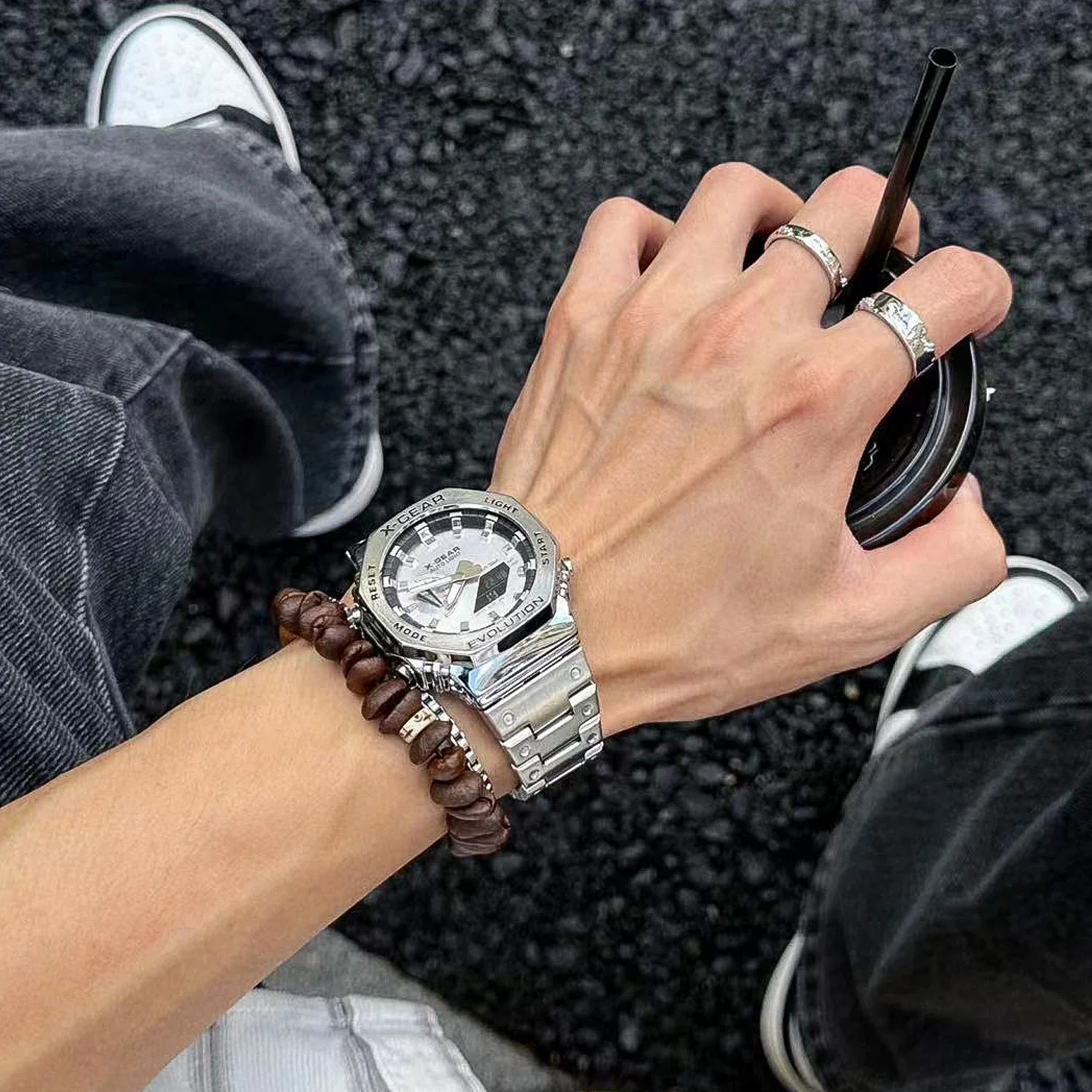 shock resistance Watch 2100 Sport Electronic Unisex Steel Strap Folding Buckle World Time Full Function Oak Series LED