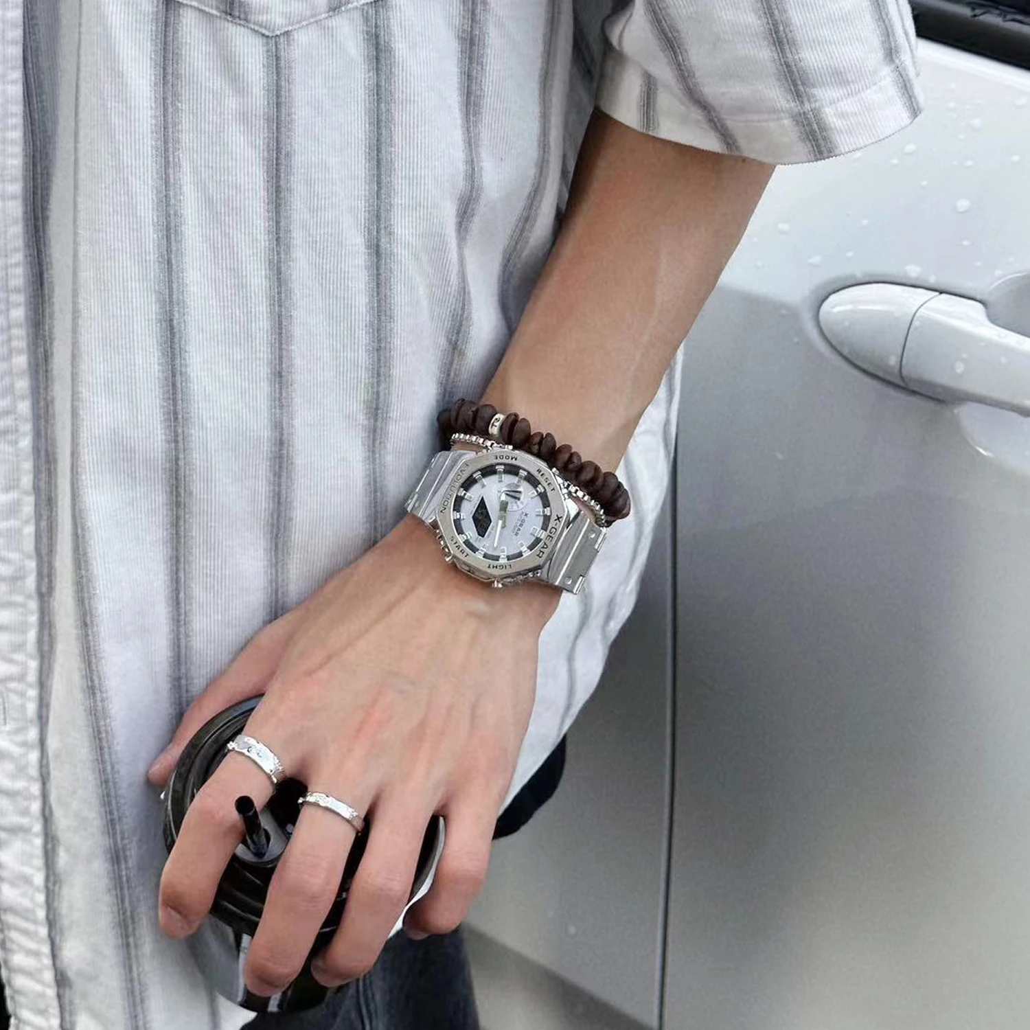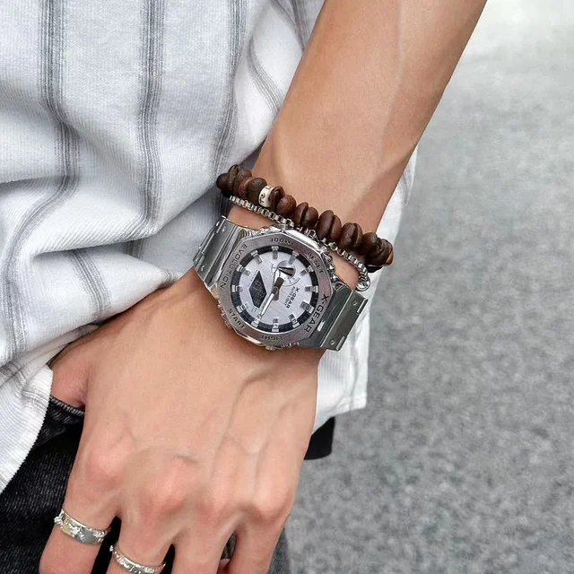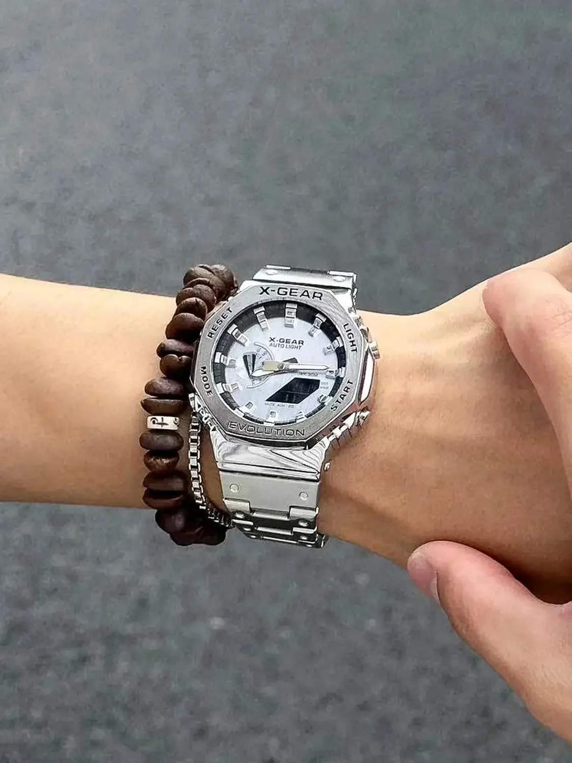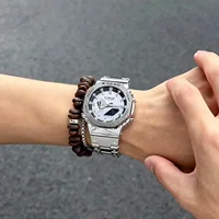 shock resistance Watch GMB Sport Digital Electronic Unisex 2100 Watch Steel Strap LED Dual Display Oak