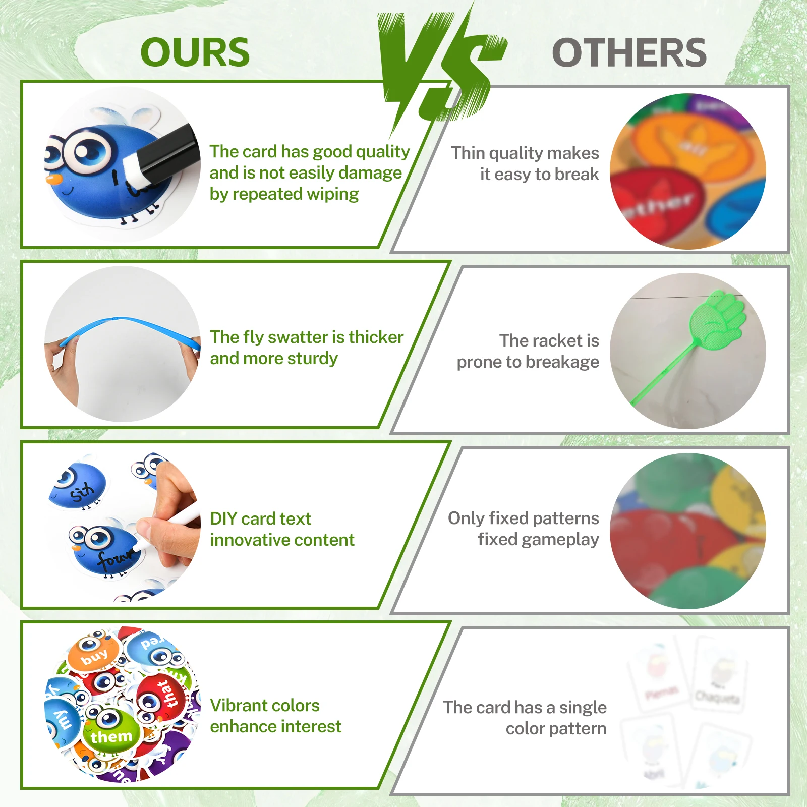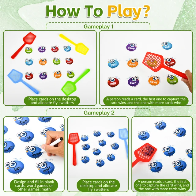 Sight Words Learning Game, Dolch Word Literacy & DIY Swat Educational Games with Dry Erasable Fly