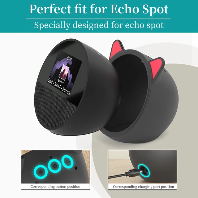 The silicone protective cover is perfect fit for Echo Spot (2024 Release) smart alarm clock.The size fits snugly, aligning the device buttons and holes without affecting usage.