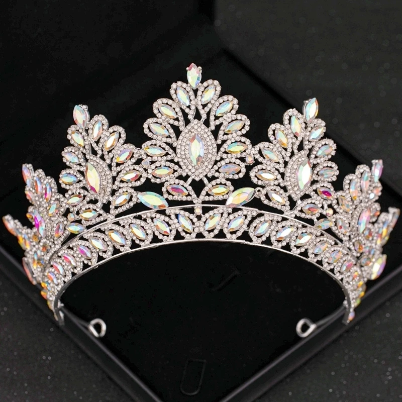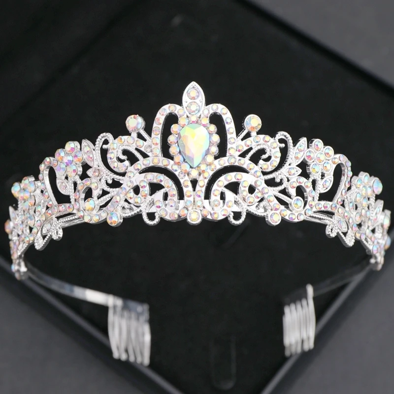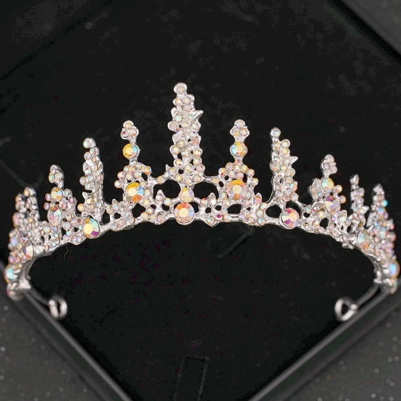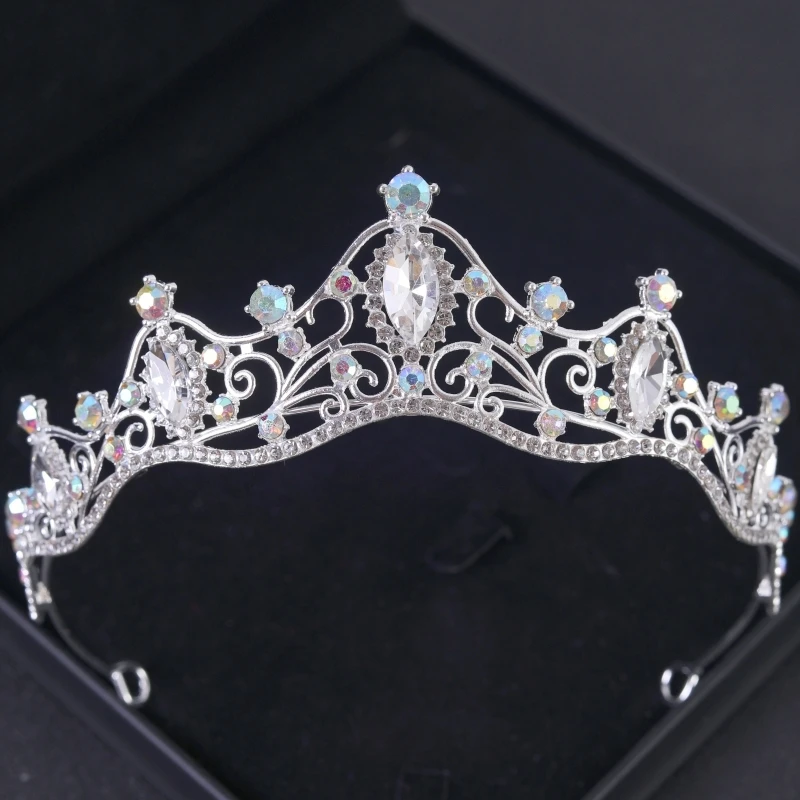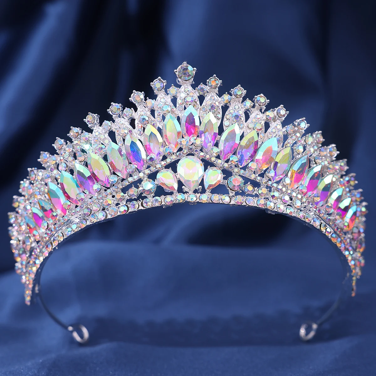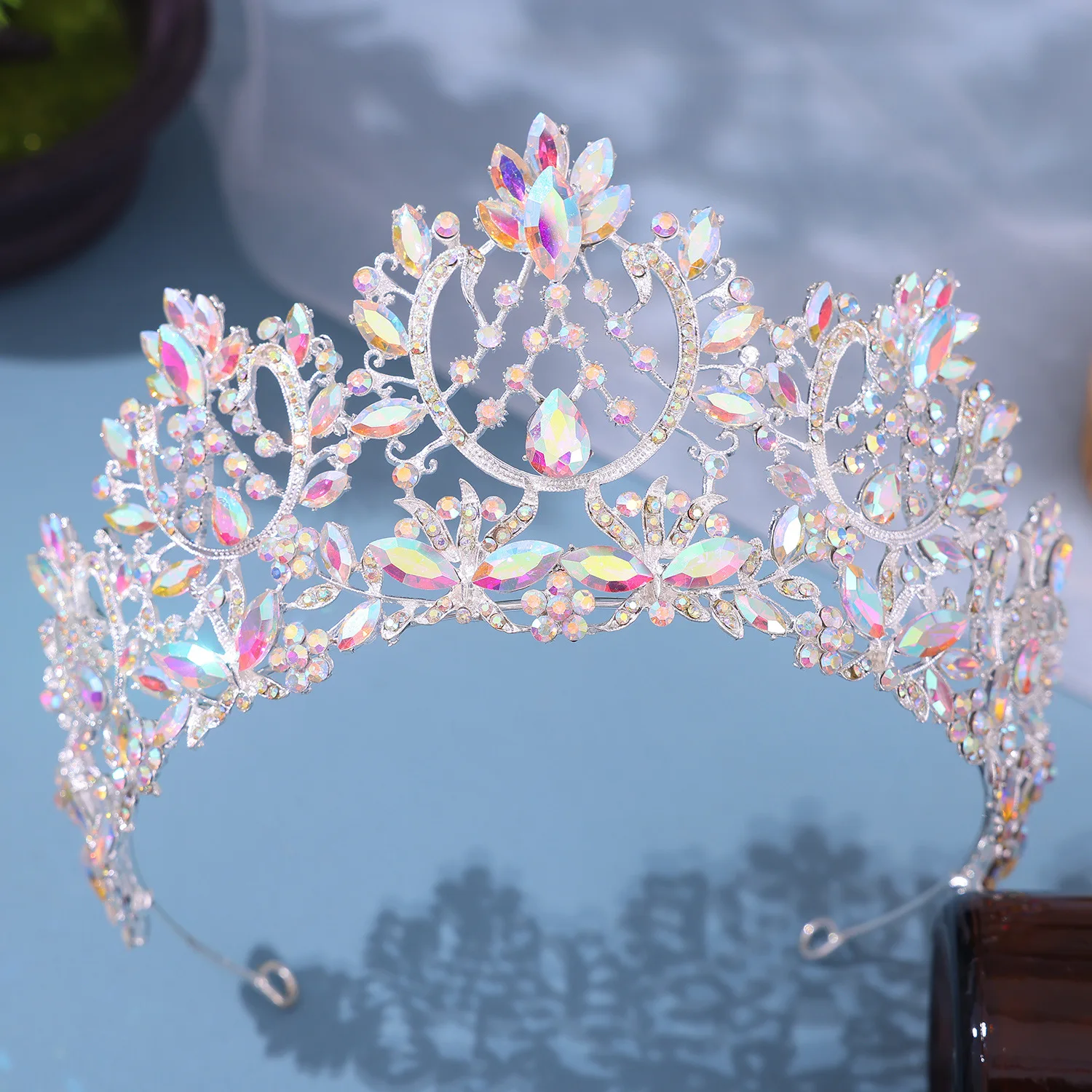 Silver AB Crystal Tiaras And Crowns Rhinestone Prom Diadem Crown For Women Bridal Wedding Hair Accessories