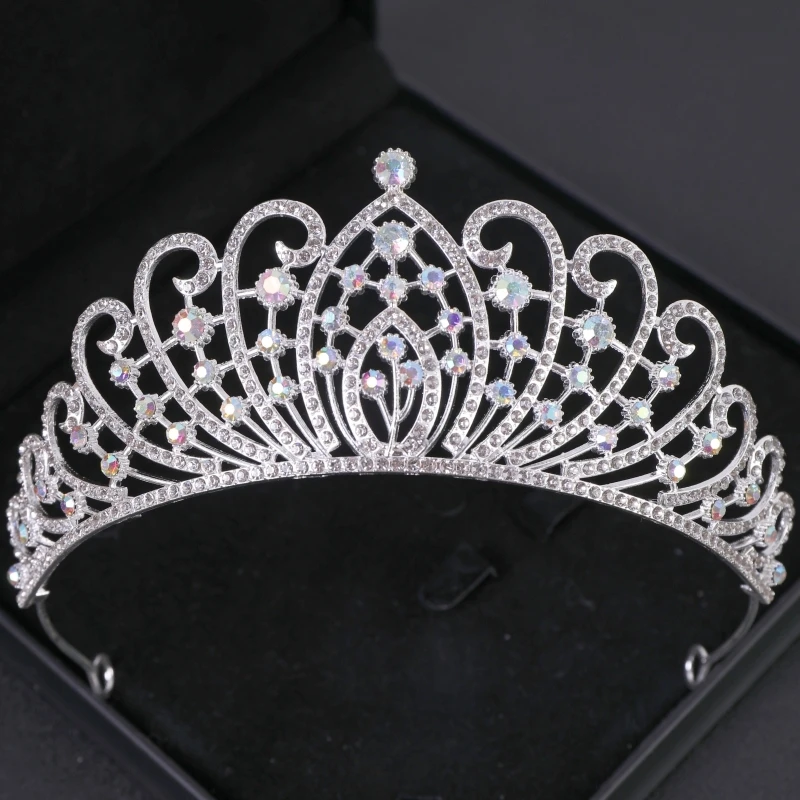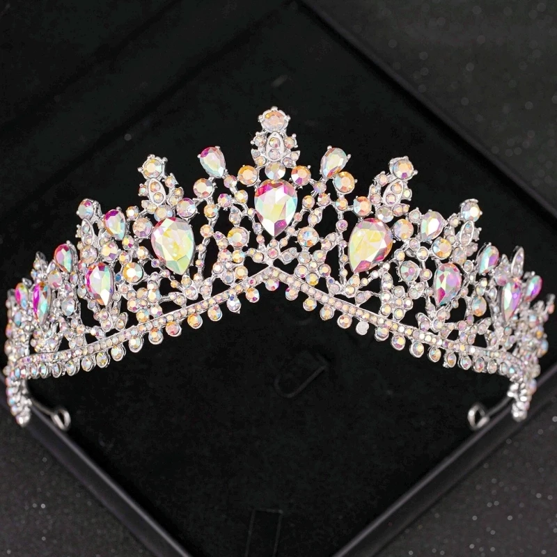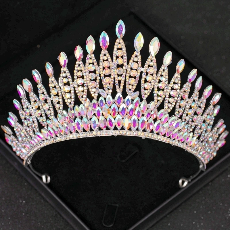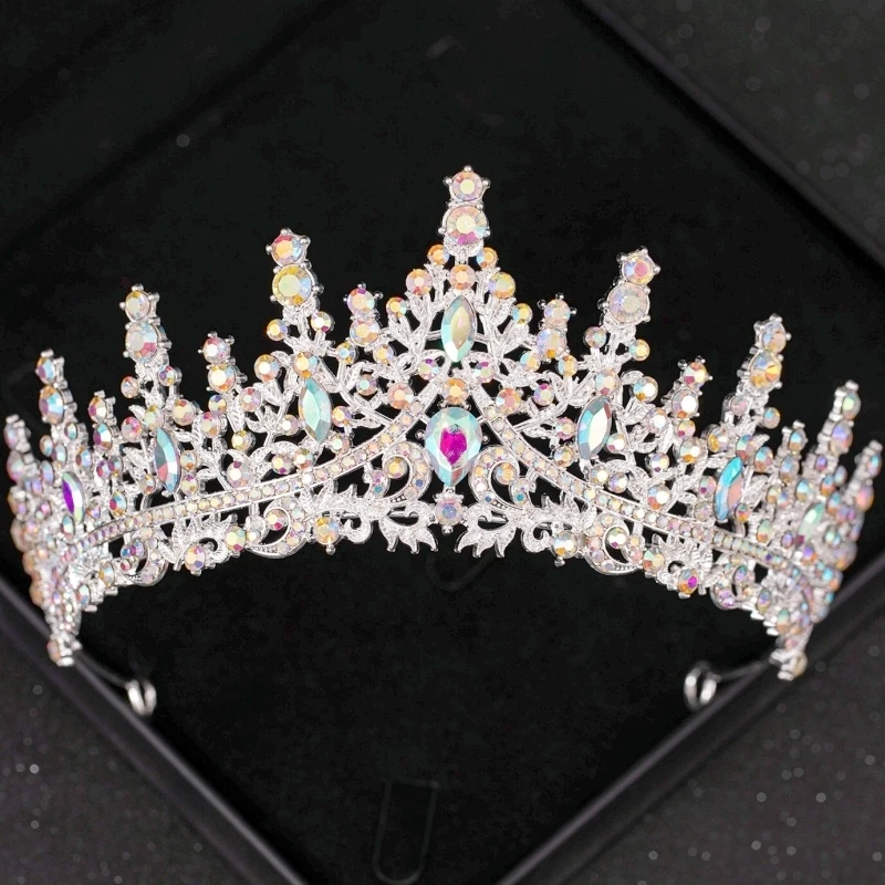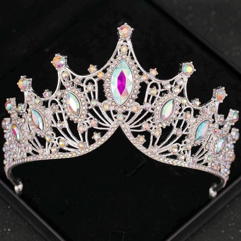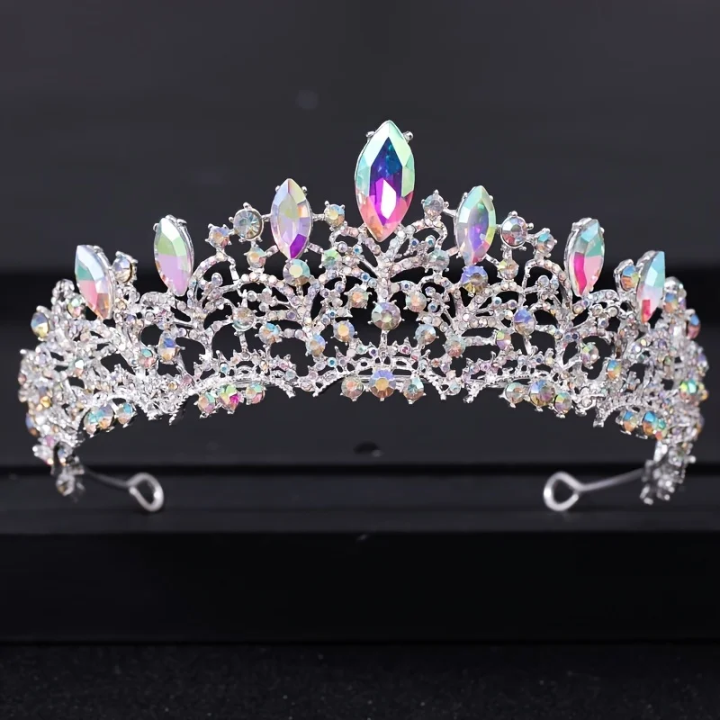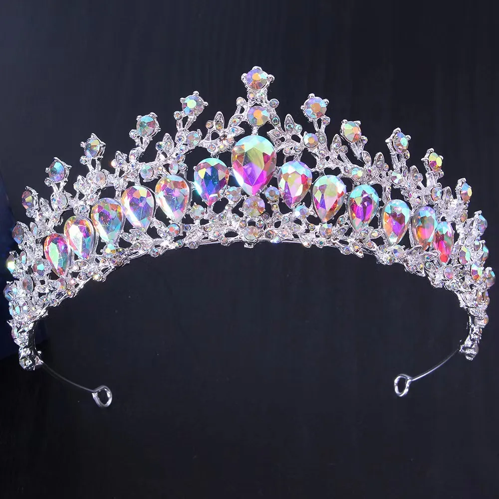 Silver AB Crystal Tiaras And Crowns Rhinestone Prom Diadem Crown For Women Bridal Wedding Hair Accessories