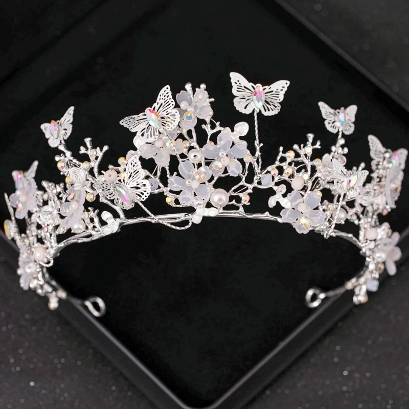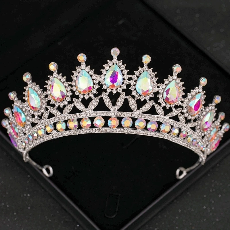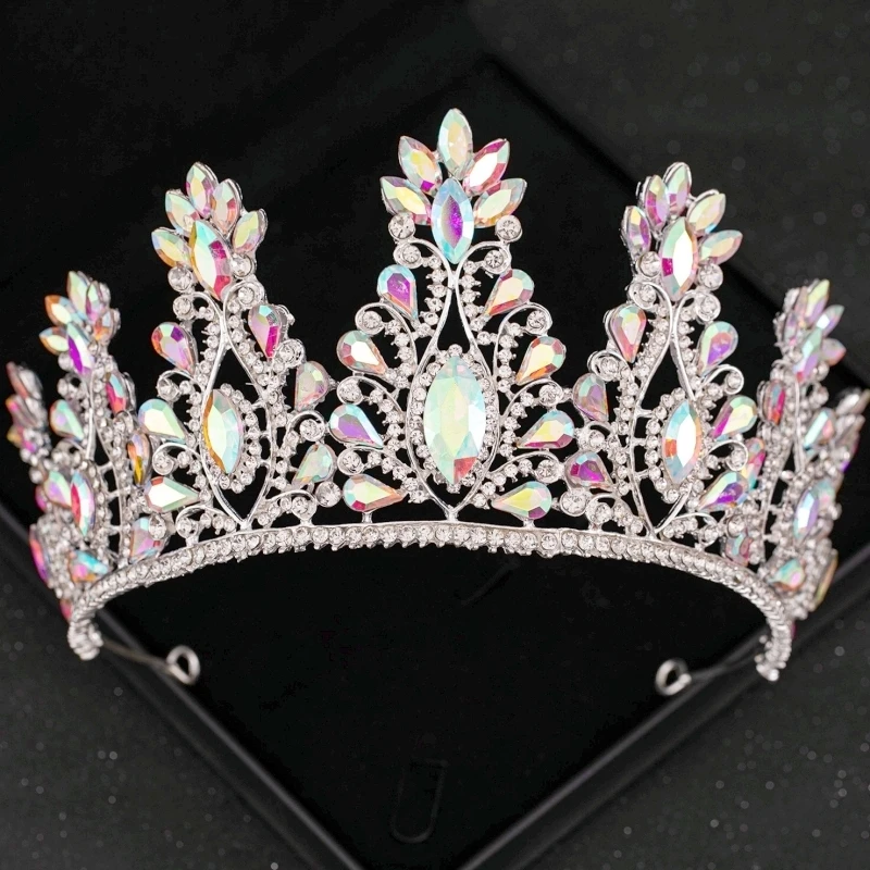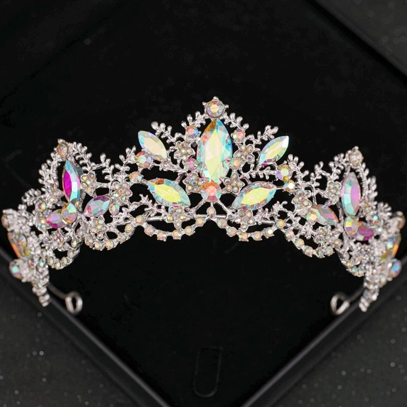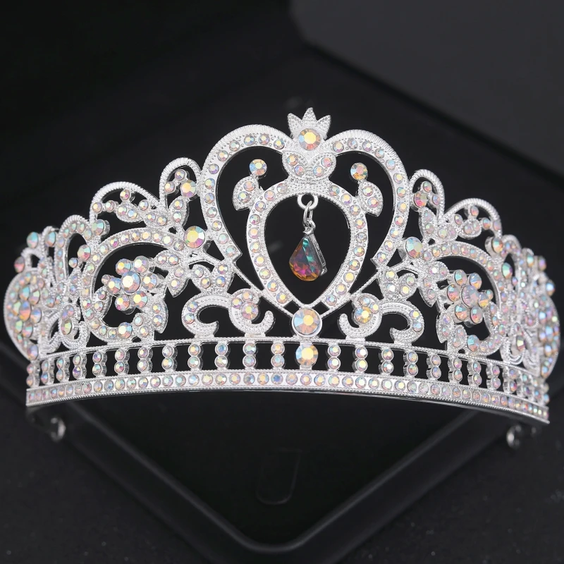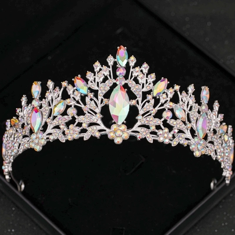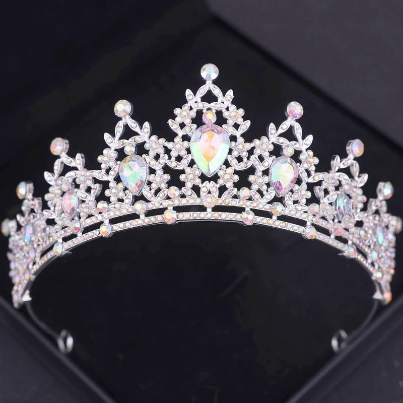 Silver AB Crystal Tiaras And Crowns Rhinestone Prom Diadem Crown For Women Bridal Wedding Hair Accessories