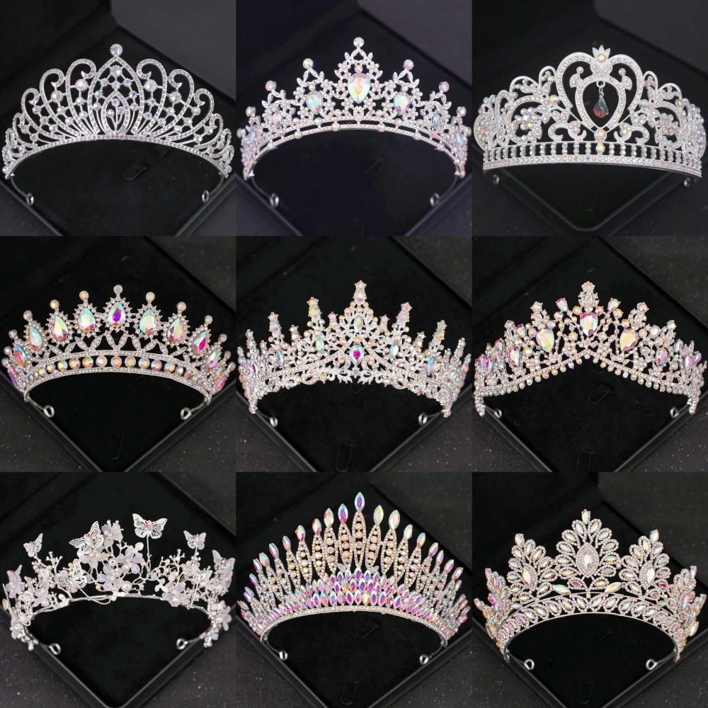 Silver AB Crystal Tiaras And Crowns Rhinestone Prom Diadem Crown For Women Bridal Wedding Hair Accessories