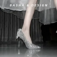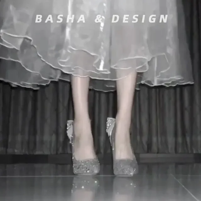 Silver Crystal High Heels Women's Thin Heel 18 Years Old Adult Dress Elegance Butterfly Wedding Gown Two-Way Wedding Shoes Brida