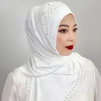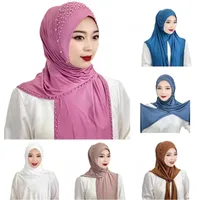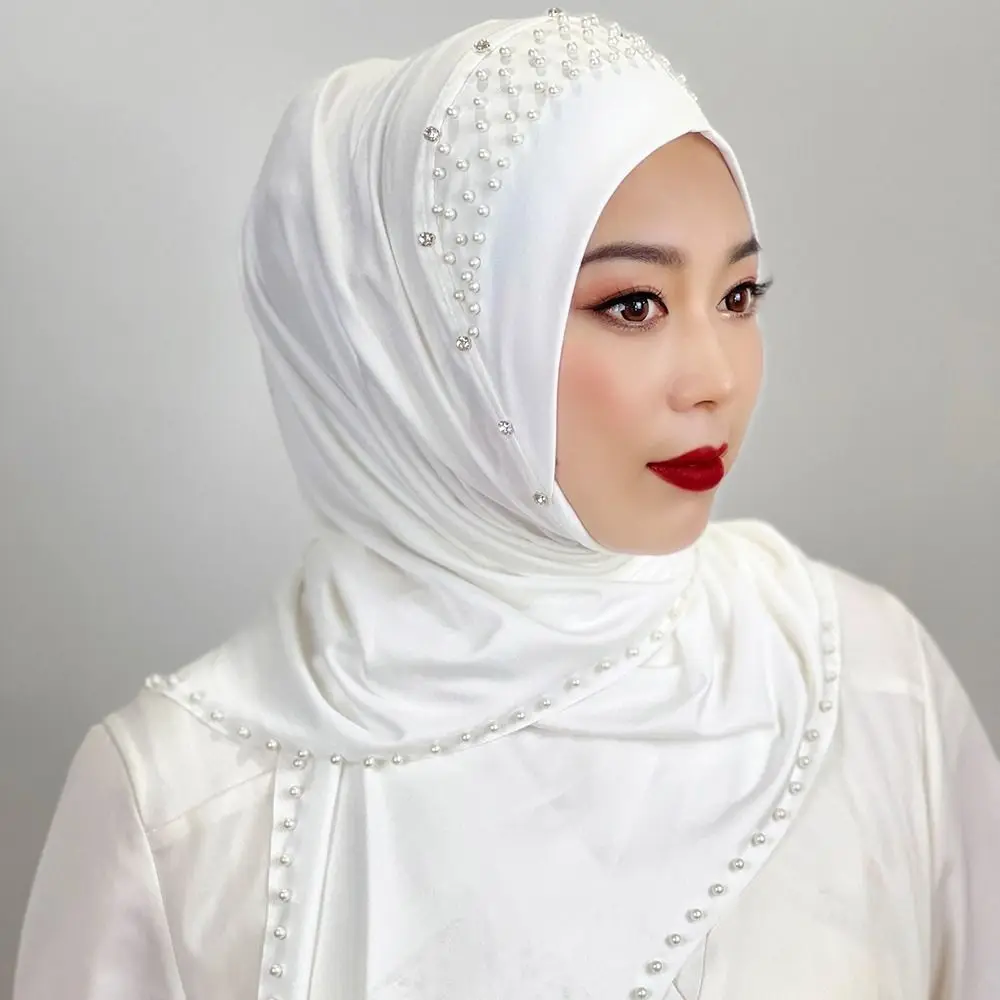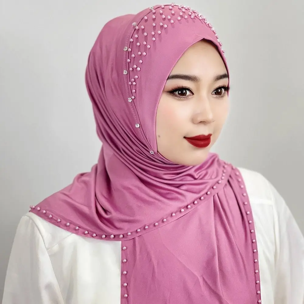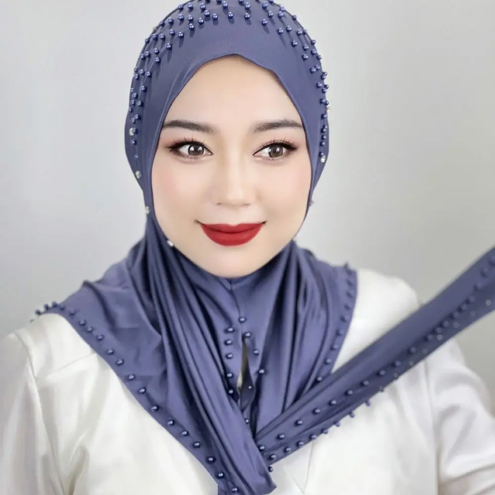 Simple Beaded Muslim Hijab Full Cover Elastic Turkish Head Wrap Scarf Veil Soft Women's Pray Hat Woman