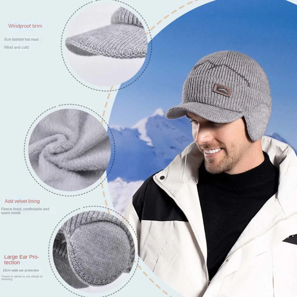 Simple Soft Earflap Woolen Hat Anti-cold Headgear Ear Protection Peaked Cap Solid Color Thickened Knitted
