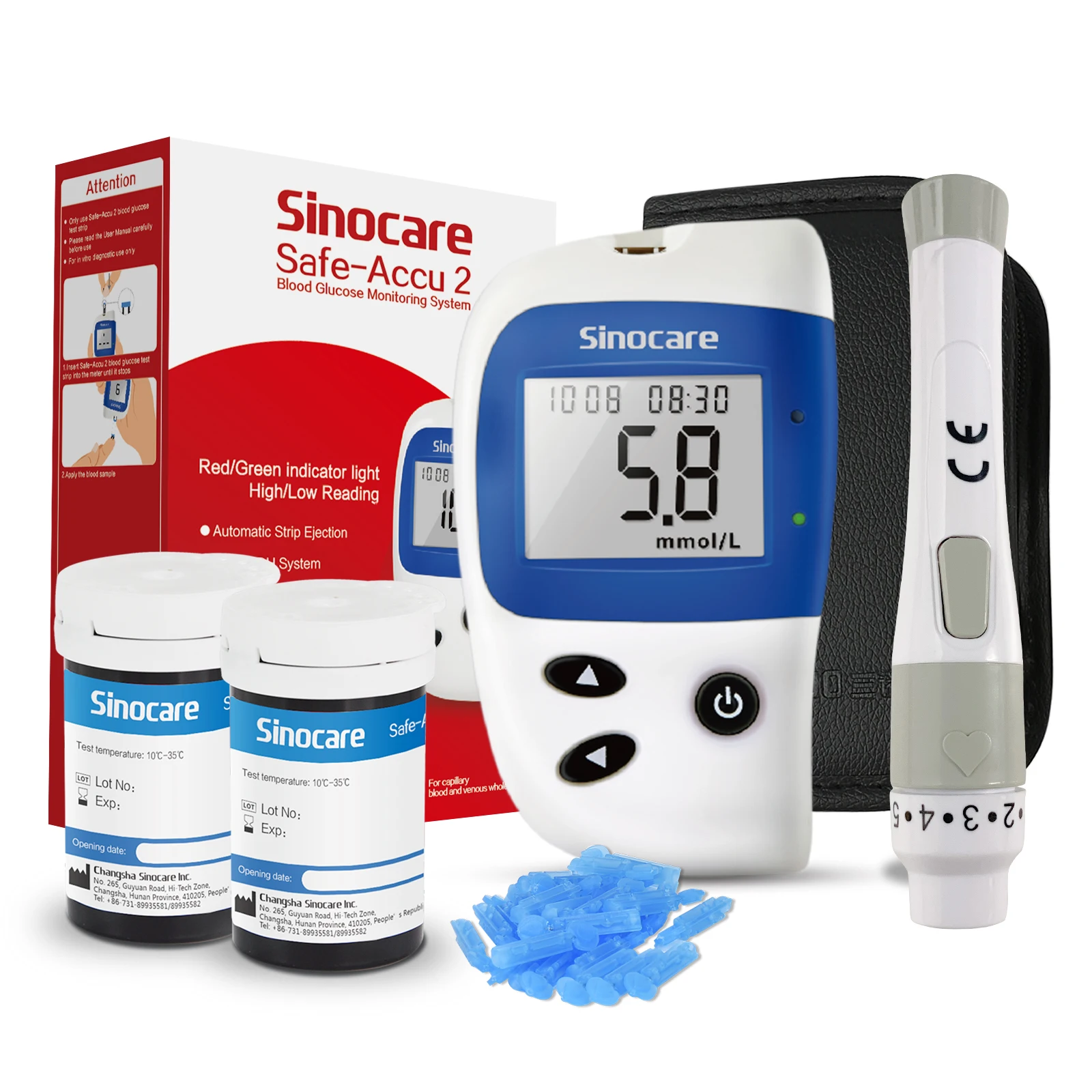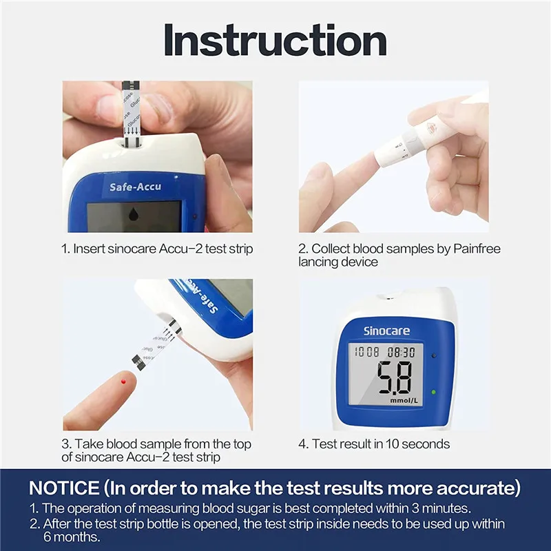 Sinocare Safe Accu 2 Glucometer Kit Blood Sugar Meter Diabetes Sugar Test Machine Glucose Test Strips