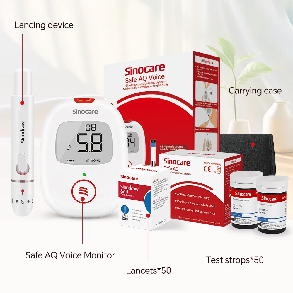 Sinocare Safe AQ Voice Blood Glucose Meter Glucometer with Test Strips Lancets Blood Sugar Tester for Diabetes