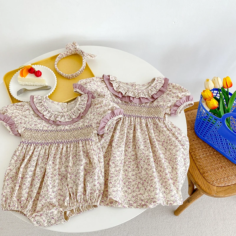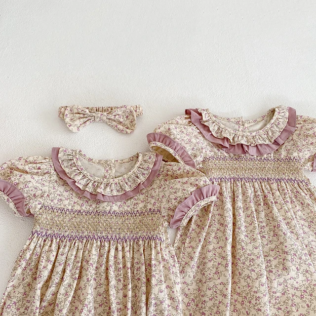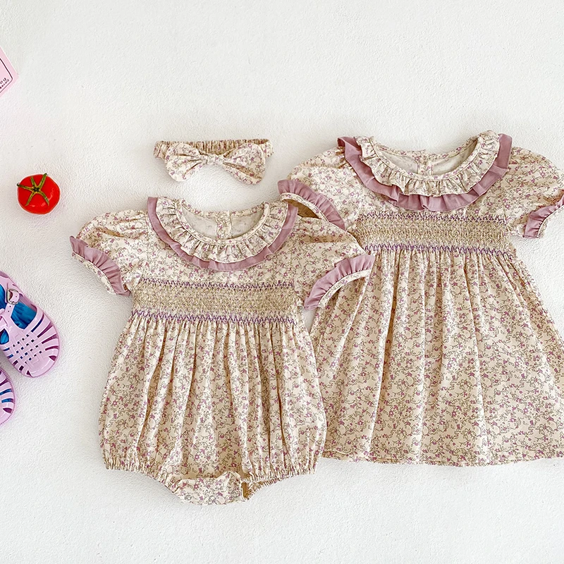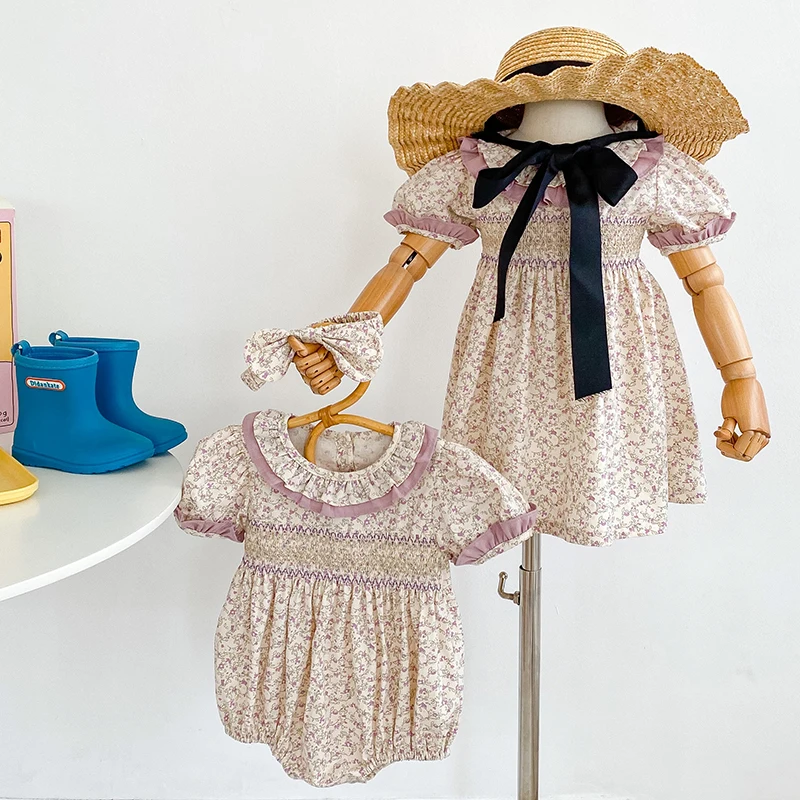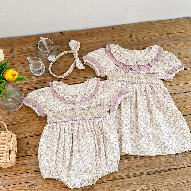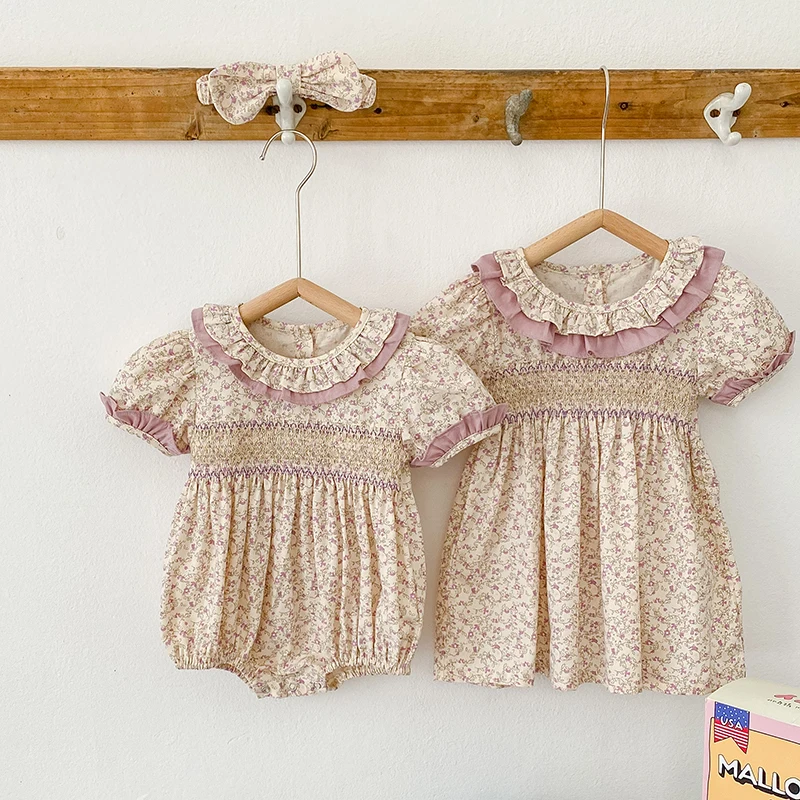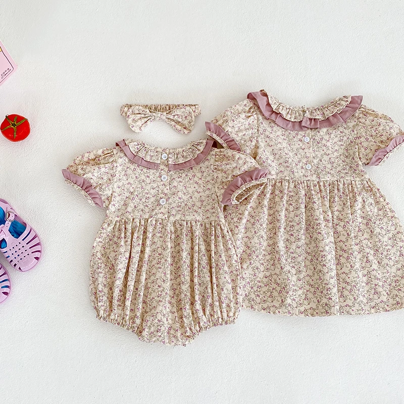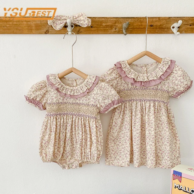 Sister Outfit Summer Girl Baby Romper Toddler Baby Girls Embroidery Dresses