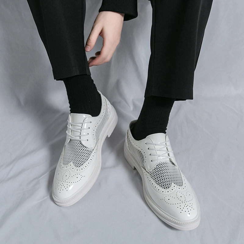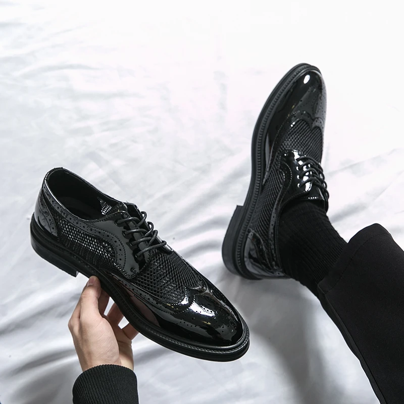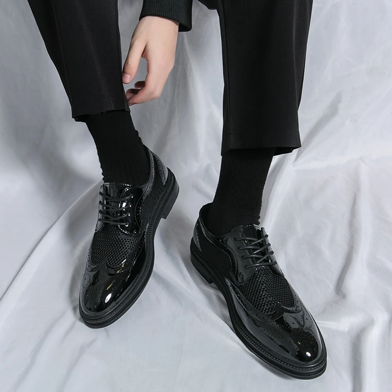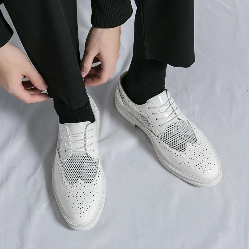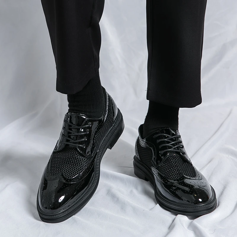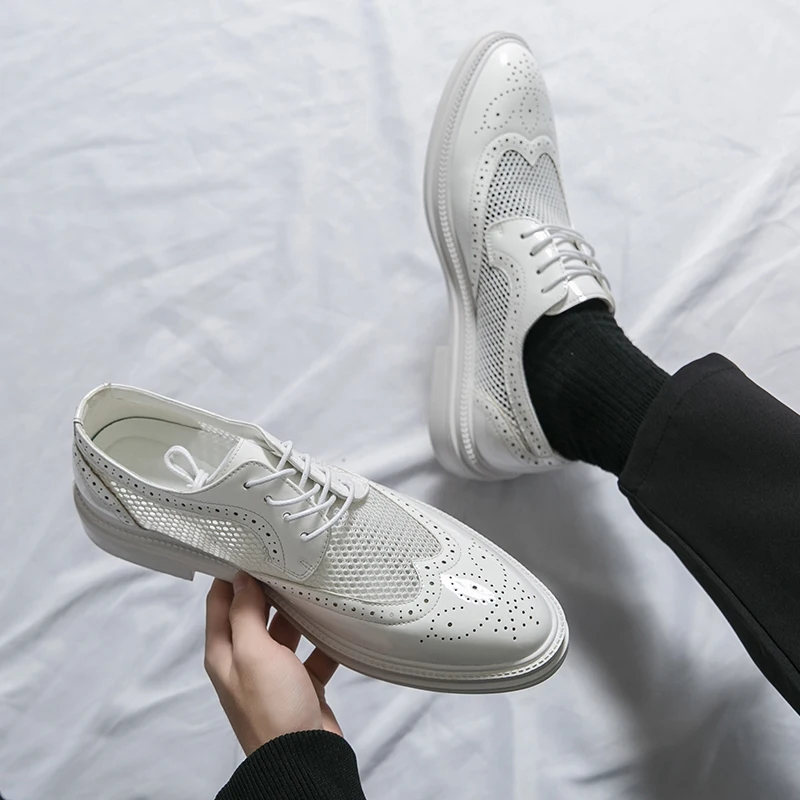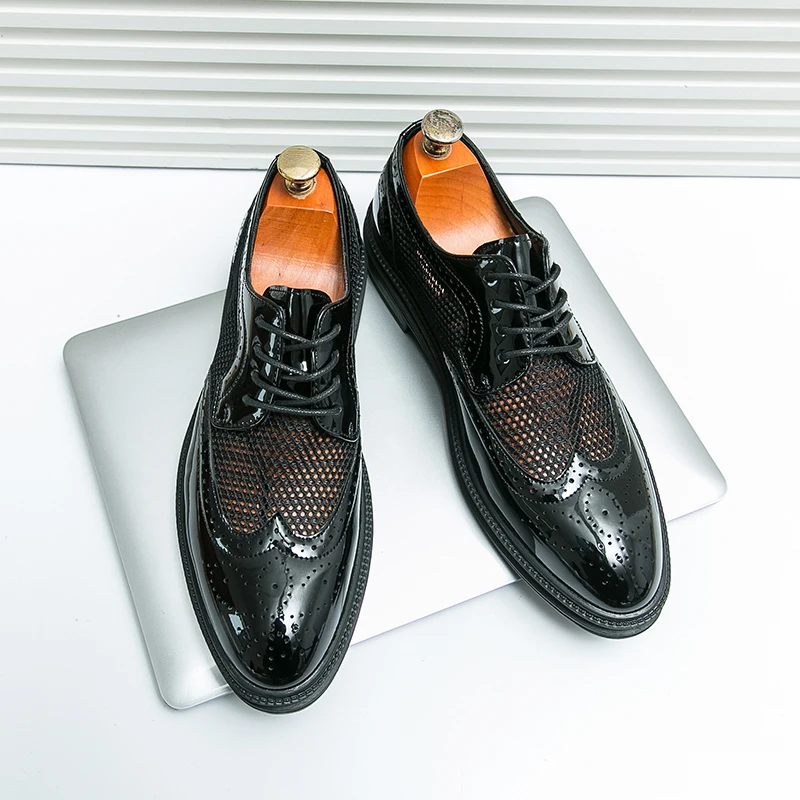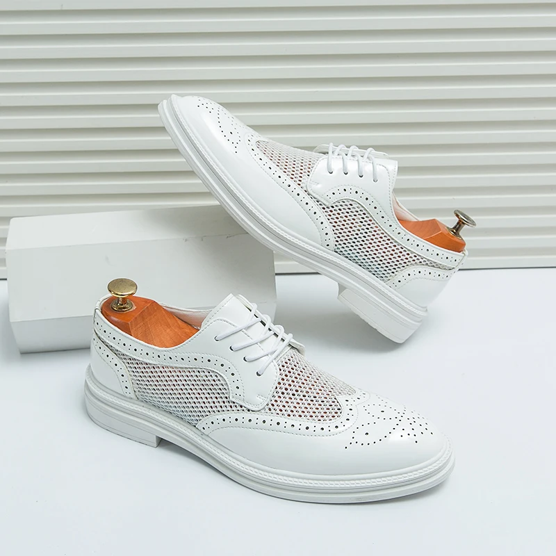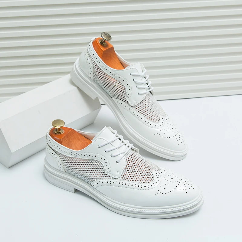 Size 38-46 Summer Mens Loafers Leather Pointed Head Sandals Derby Hand Slip On Dress Shoes for Men Wedding